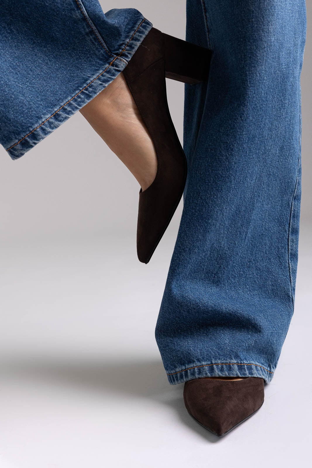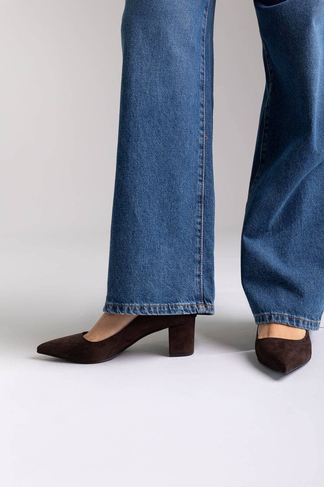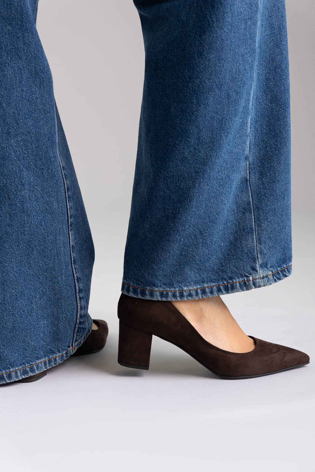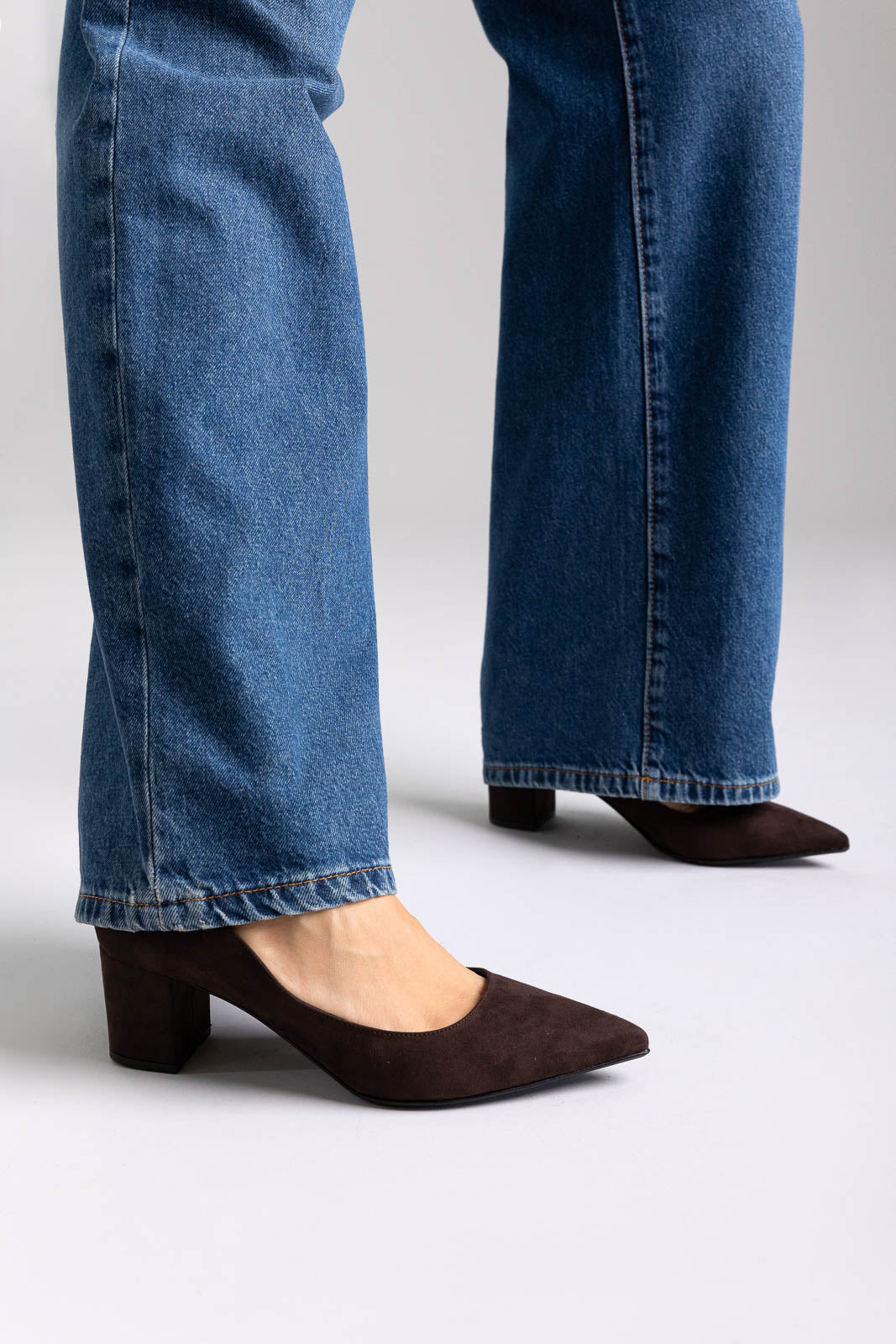 Μυτερές γόβες από σουέτ με σταθερό τετράγωνο τακούνι για κομψό ύψος. Κομψή σιλουέτα, σταθερή εφαρμογή και άνεση όλη μέρα—εκλεπτυσμένες γόβες σχεδιασμένες για τη σύγχρονη γυναίκα.