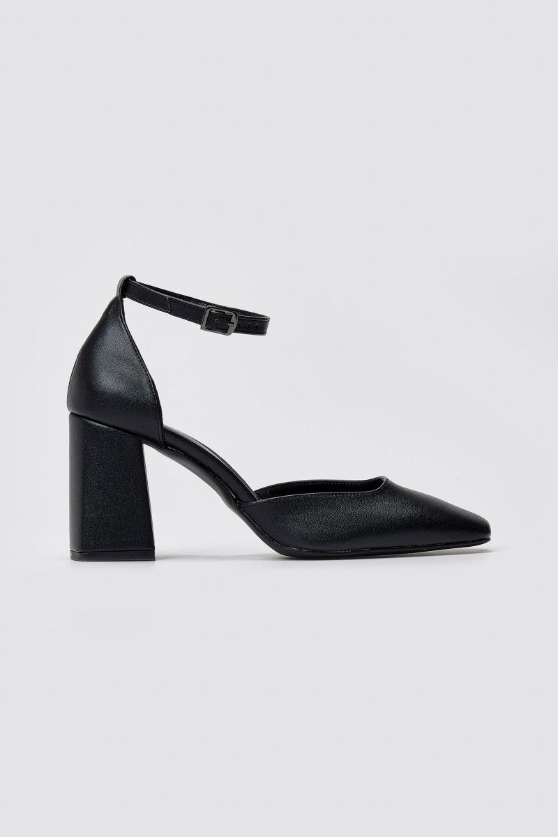 Κομψές γόβες με λουράκι στον αστράγαλο και πλαϊνά ανοίγματα. Ψηλό τετράγωνο τακούνι και σταθερή εφαρμογή προσφέρουν εκλεπτυσμένη άνεση—ιδανικές από το πρωί έως το βράδυ.