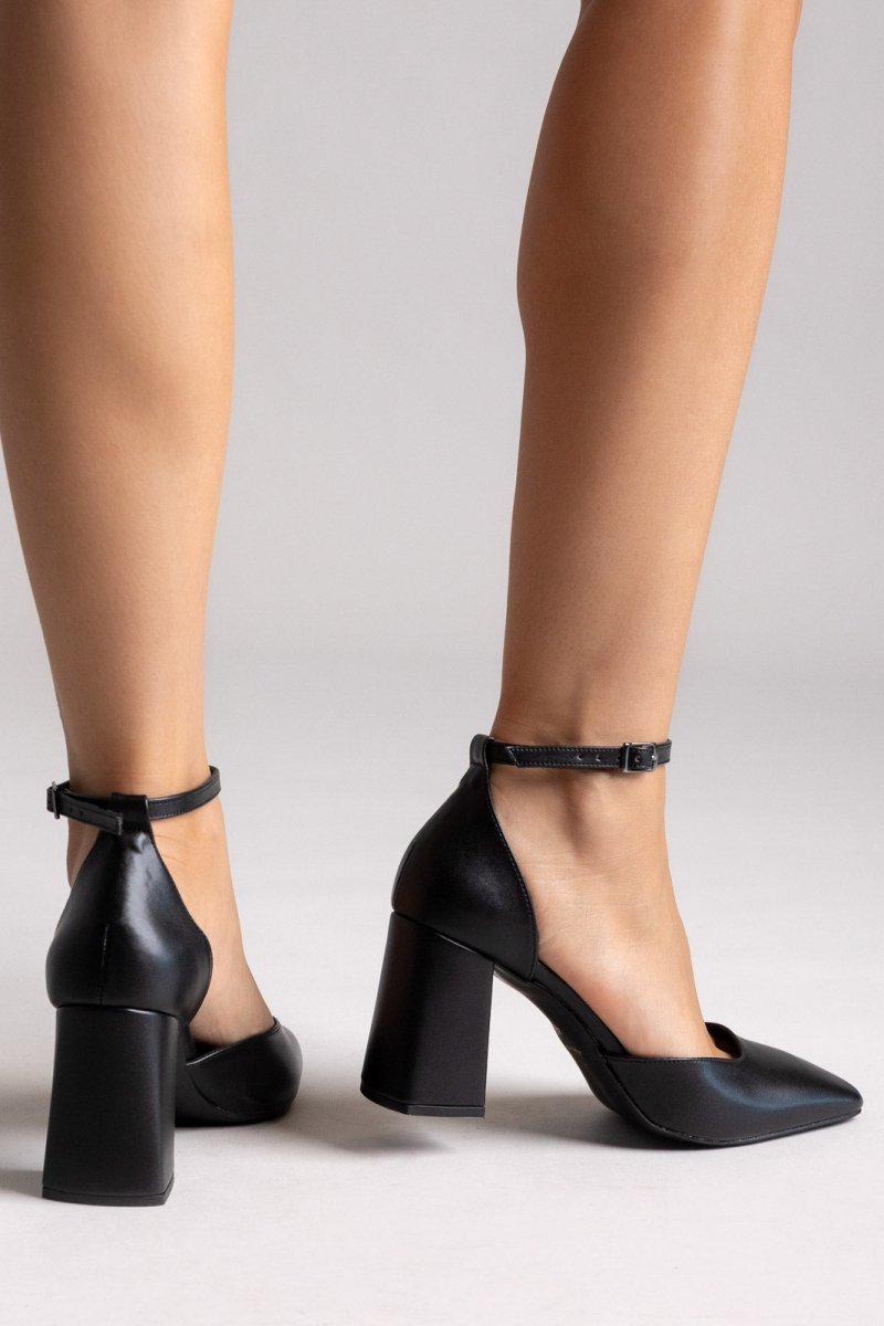 Κομψές γόβες με λουράκι στον αστράγαλο και πλαϊνά ανοίγματα. Ψηλό τετράγωνο τακούνι και σταθερή εφαρμογή προσφέρουν εκλεπτυσμένη άνεση—ιδανικές από το πρωί έως το βράδυ.