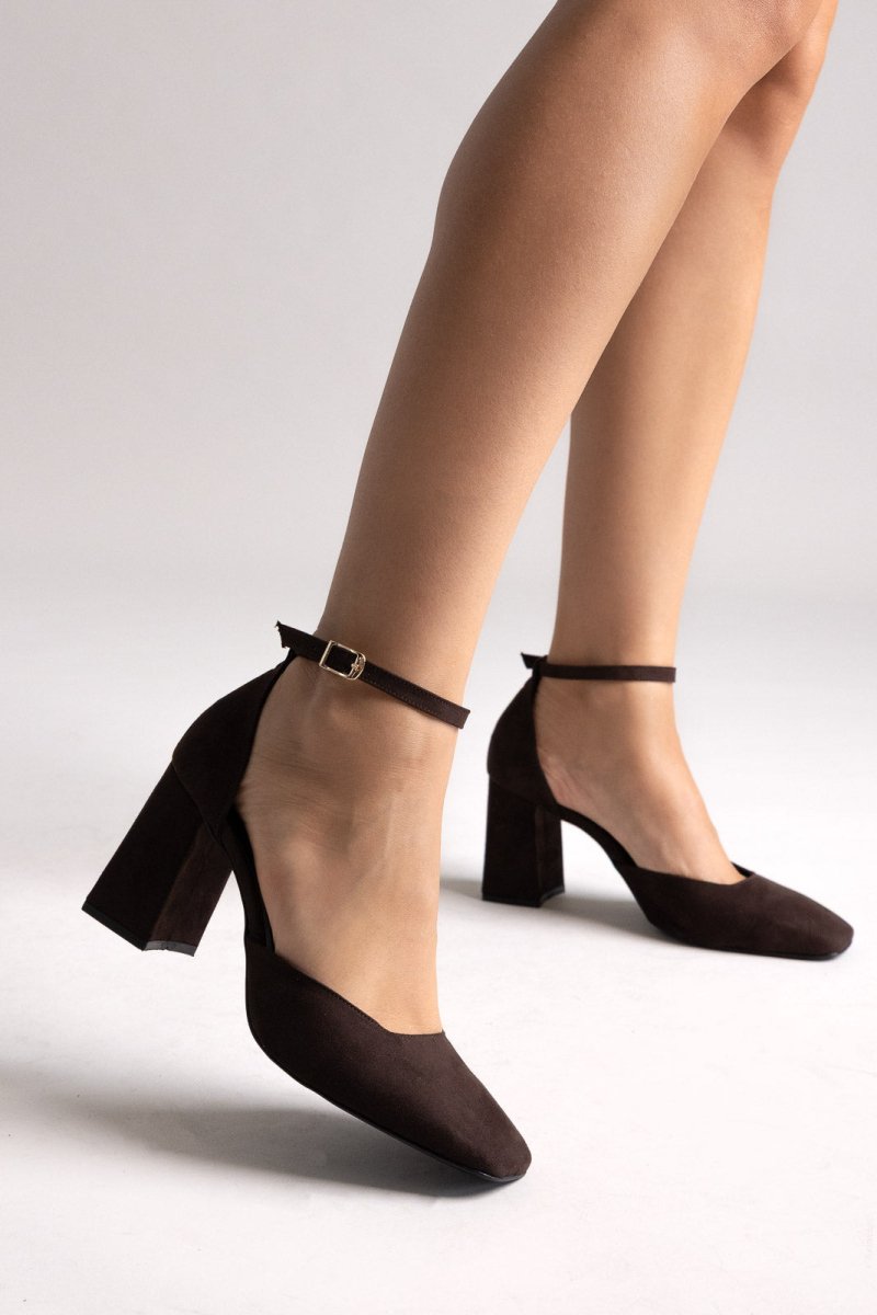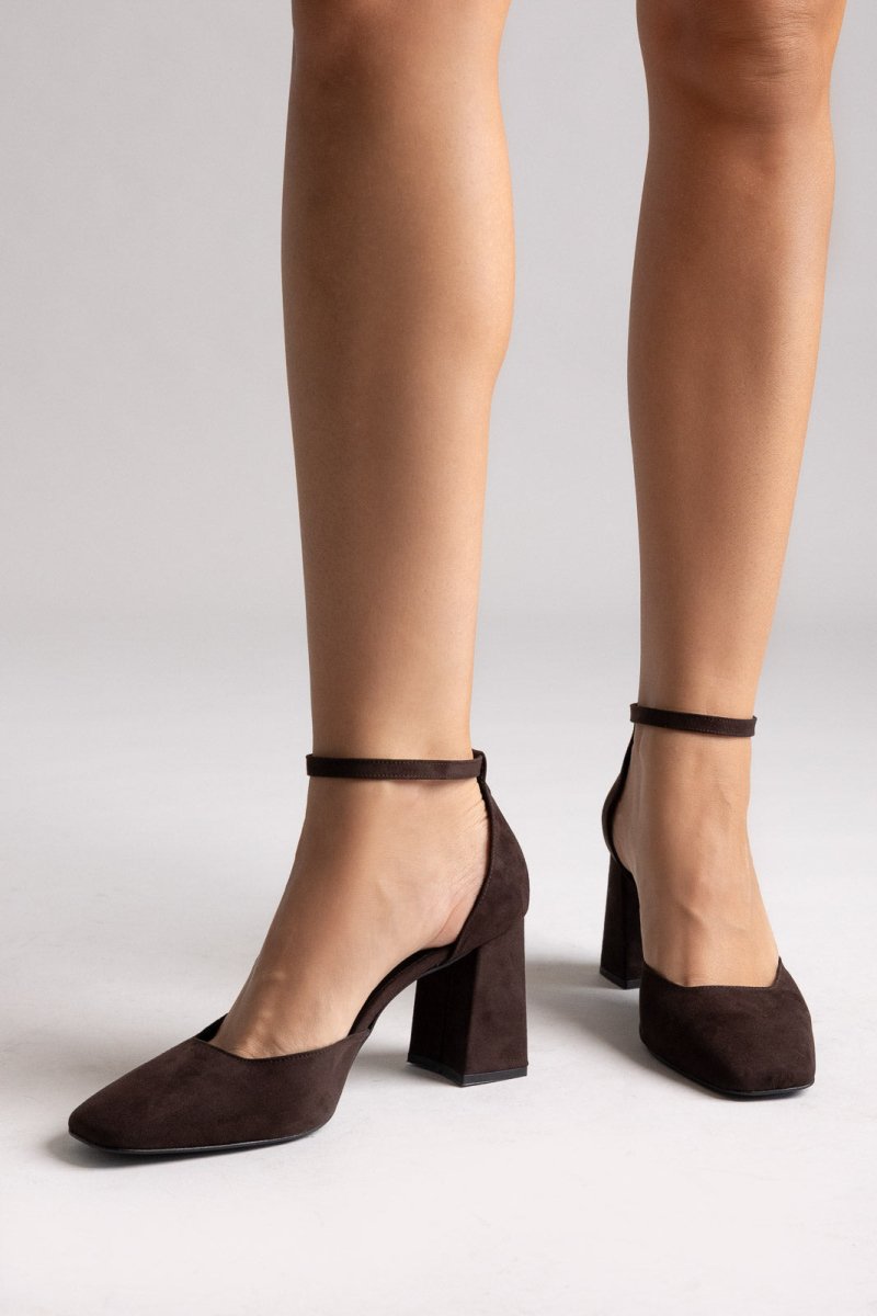 Γόβες με Τετράγωνο Τακούνι TFP - Καφέ Σουέτ