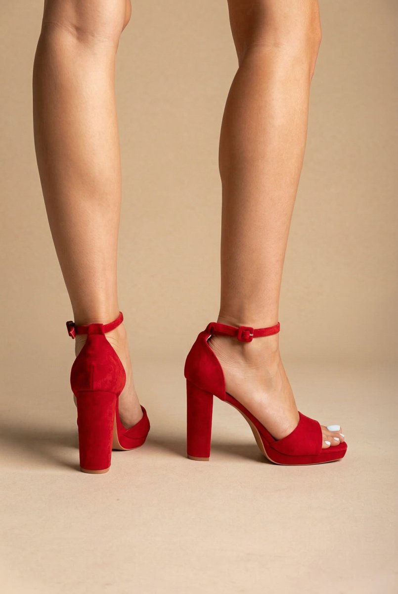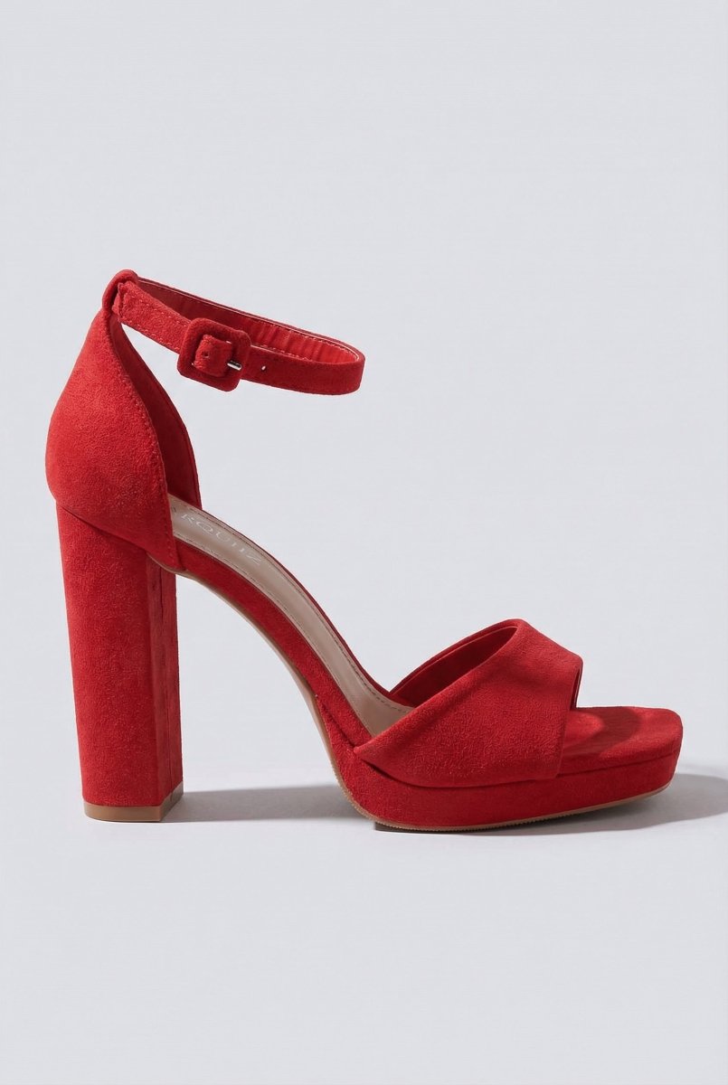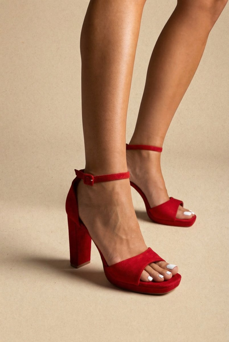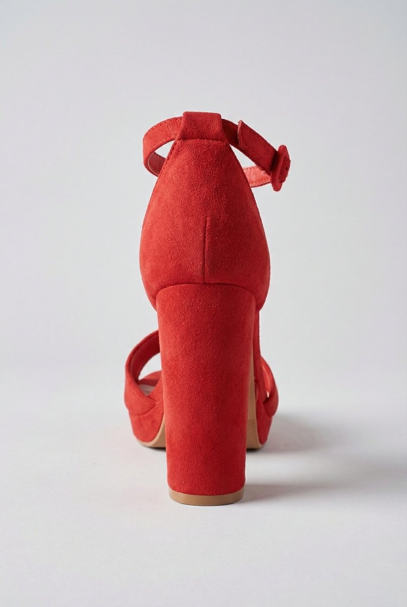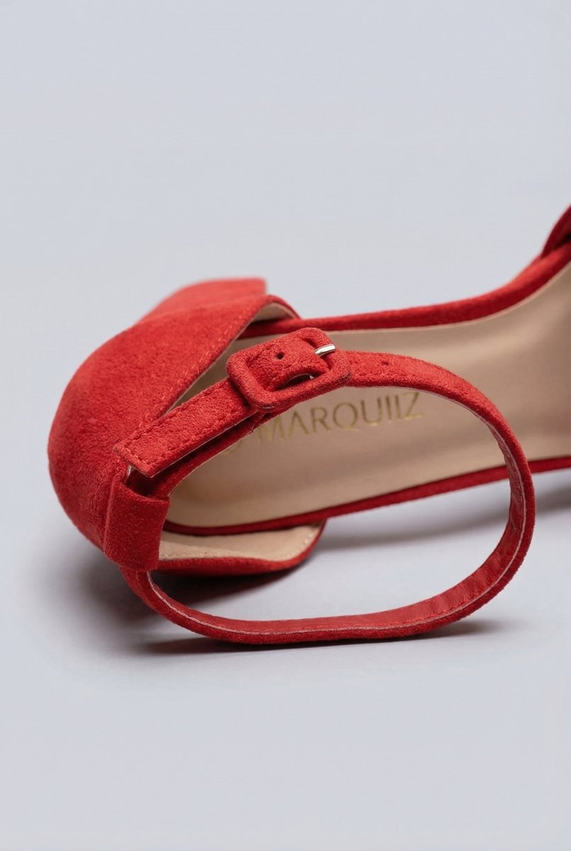 Πέδιλα με τετράγωνο τακούνι - Κόκκινο Σουέντ