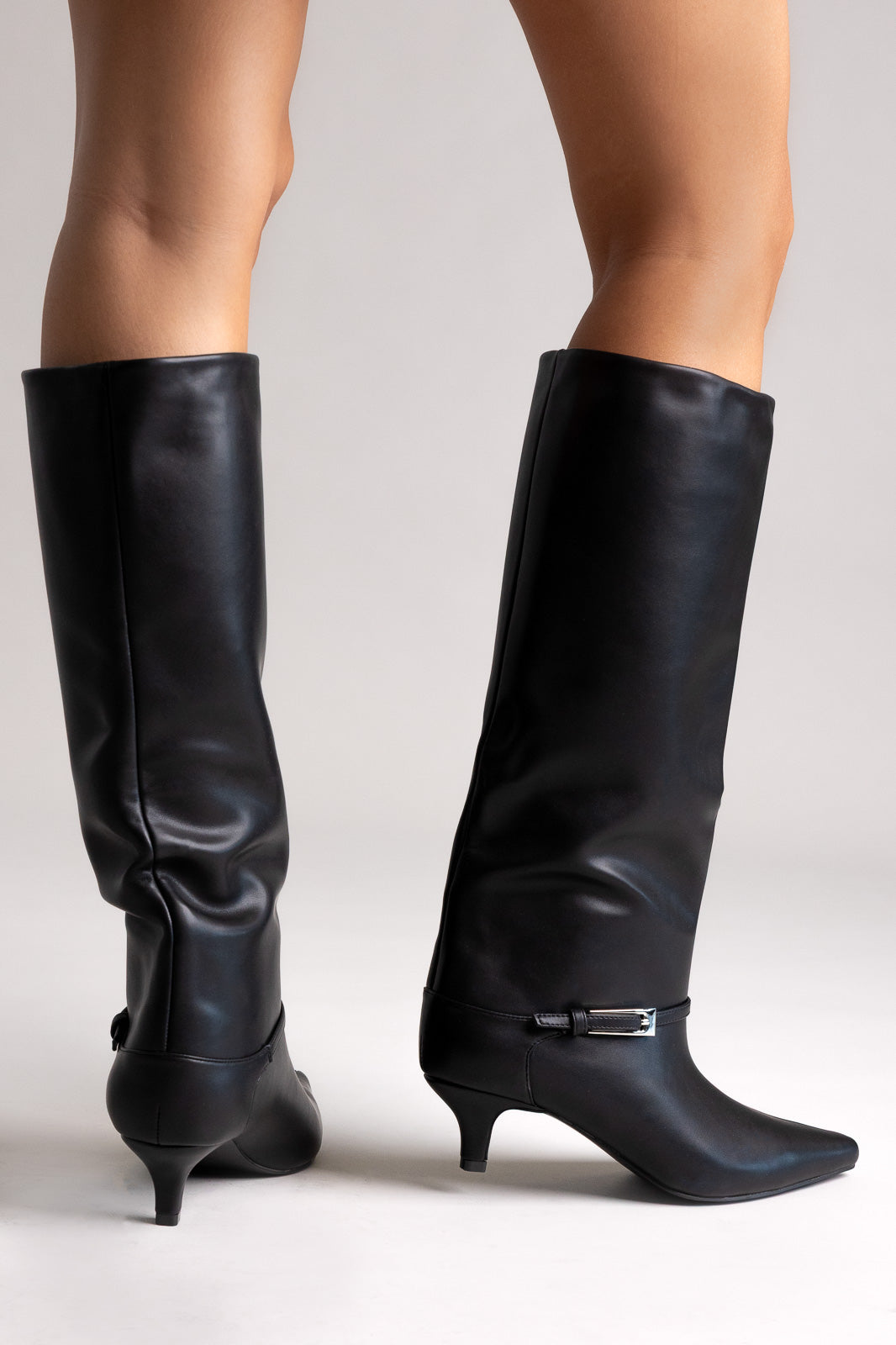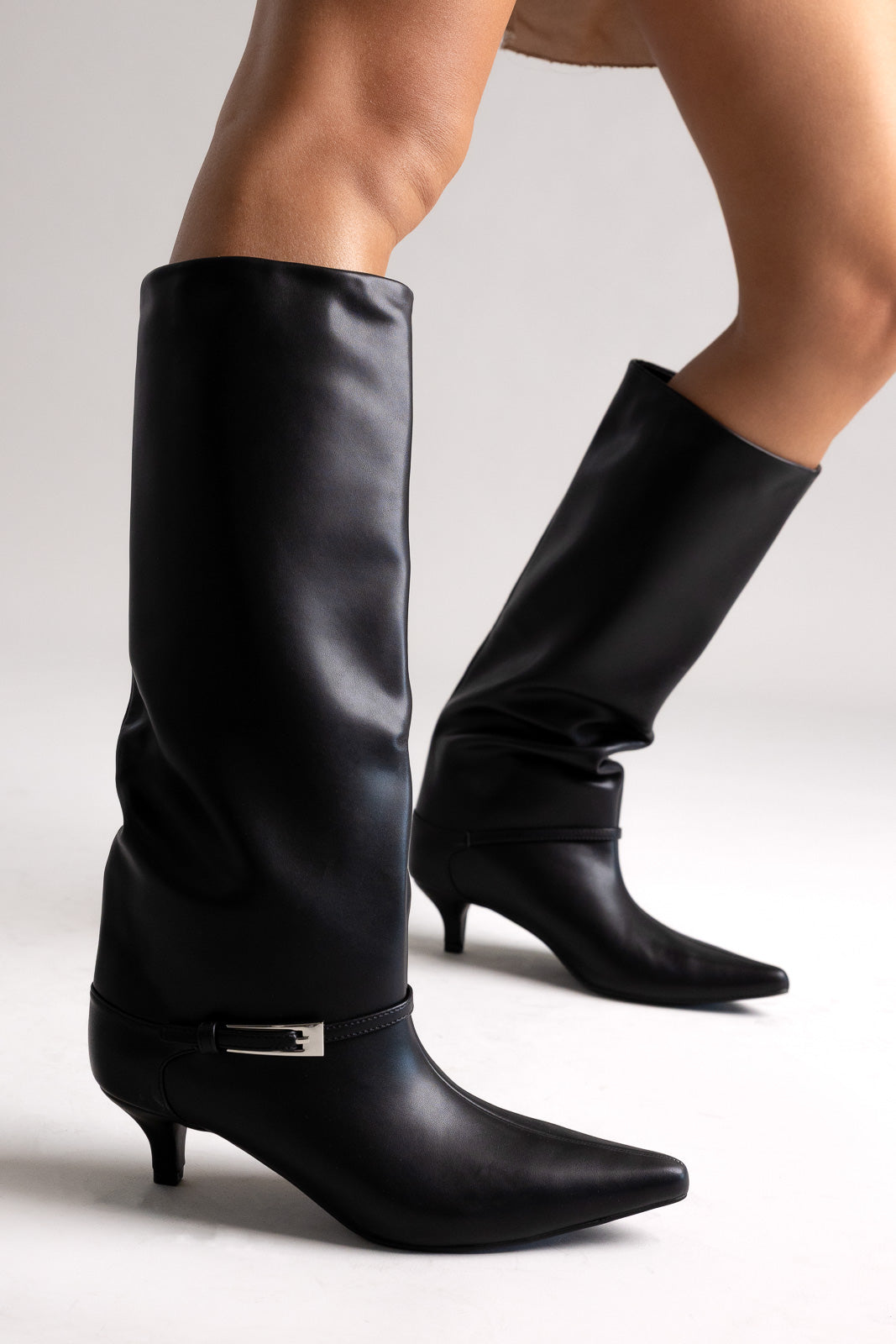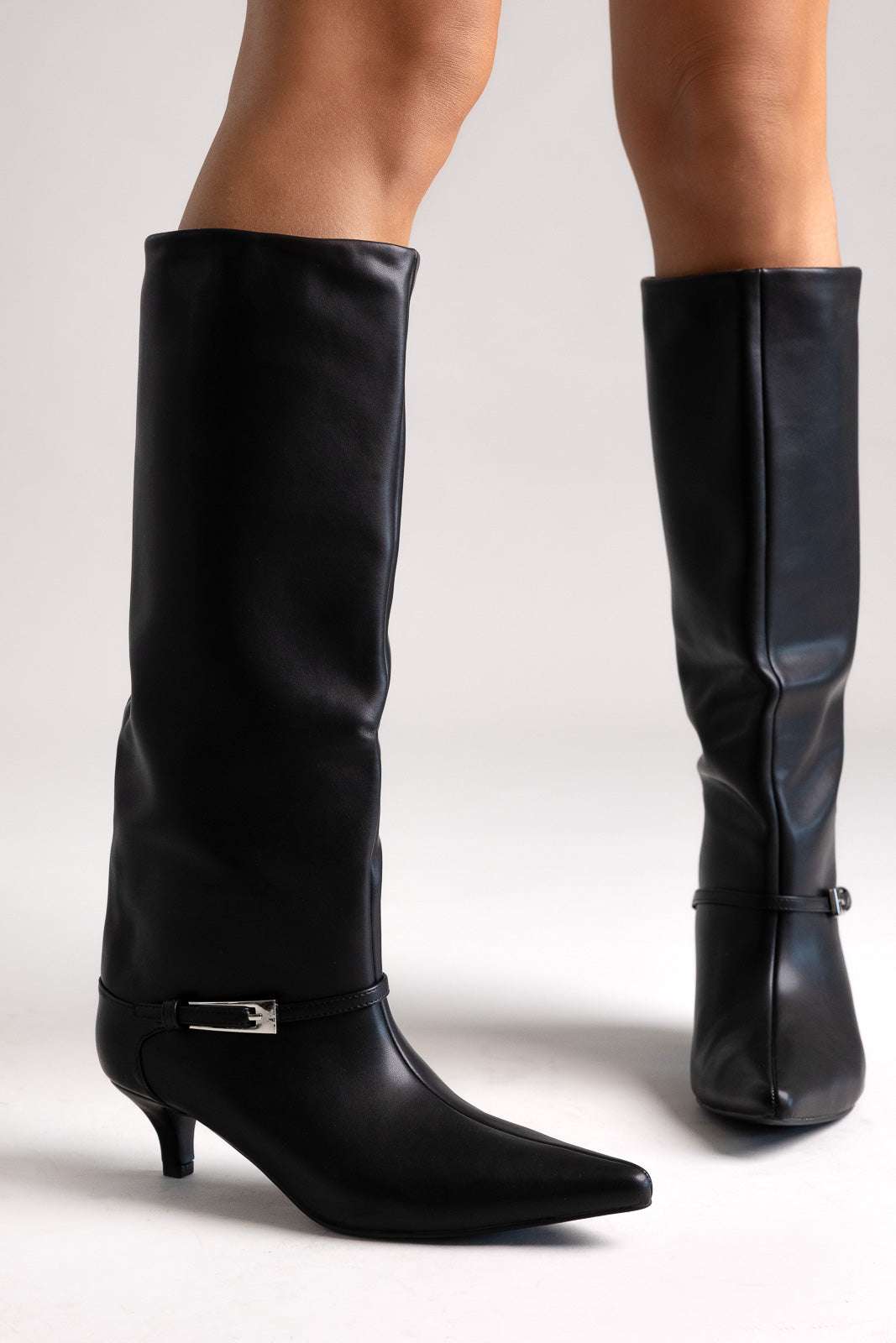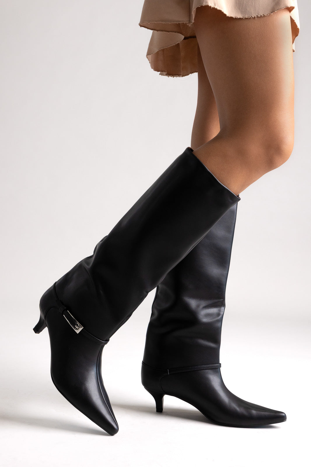Μυτερές μπότες με χαμηλό τακούνι και πλαϊνό φερμουάρ. Κομψές γραμμές και άνεση όλη μέρα για εκλεπτυσμένο, ευέλικτο στυλ από το πρωί ως το βράδυ.