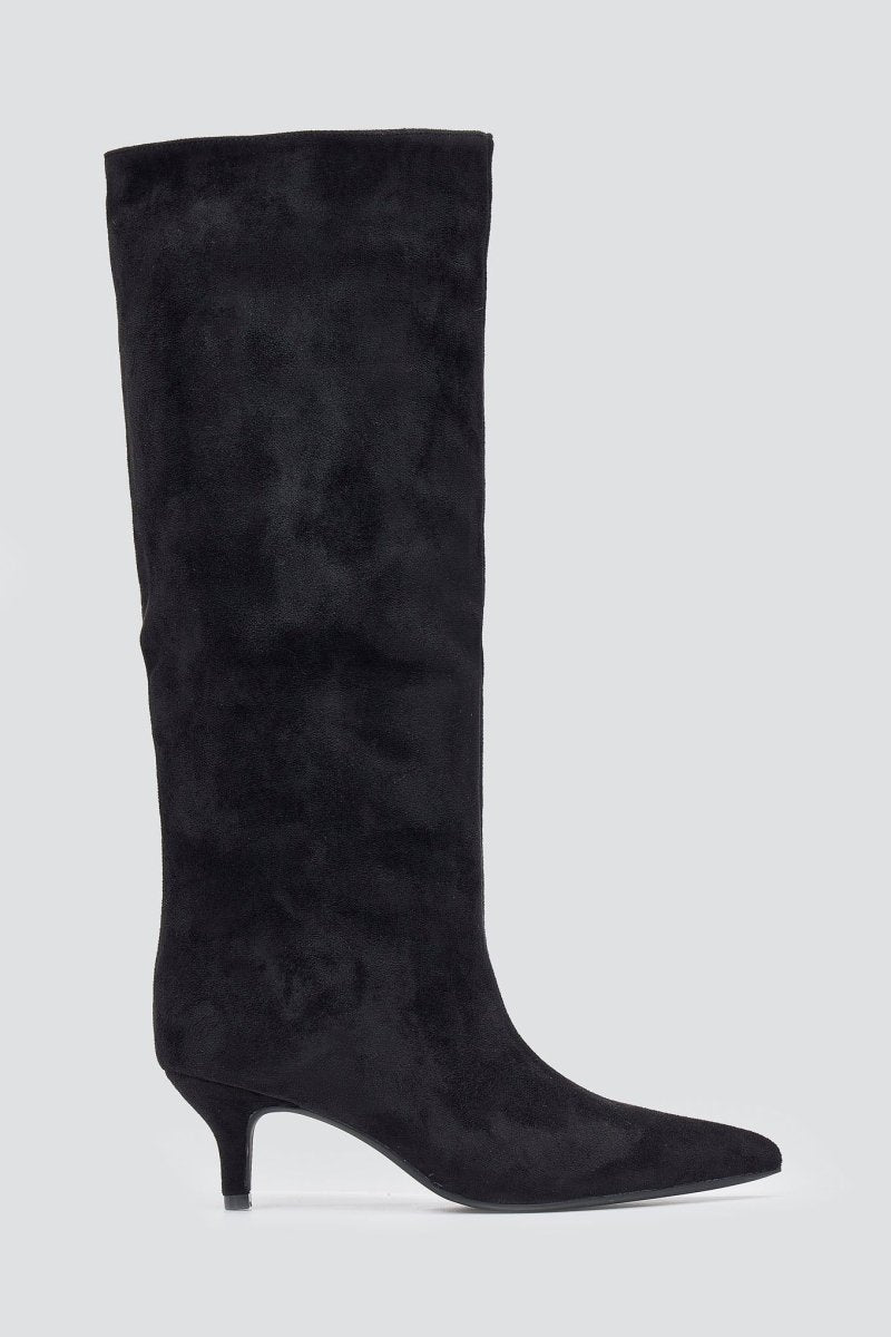 Σουέτ μπότες με μυτερή μύτη, χαμηλό τακούνι kitten και φερμουάρ στο πλάι. Κομψή σιλουέτα και μαλακή άνεση, σχεδιασμένες για σύγχρονη κομψότητα από το πρωί έως το βράδυ.