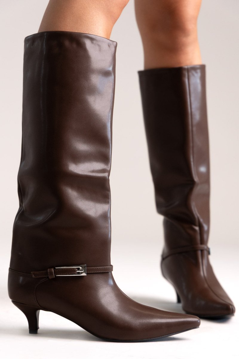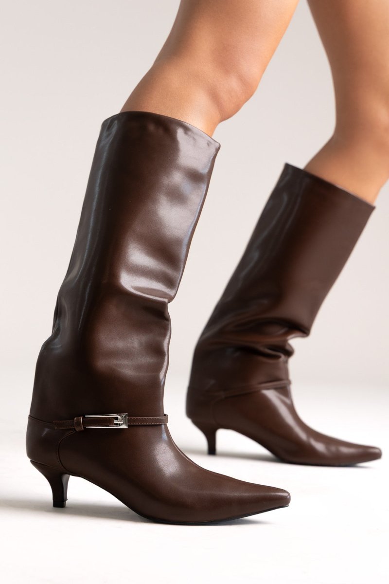 Μπότες με μυτερή μύτη, χαμηλό τακούνι και φερμουάρ στο πλάι. Κομψές γραμμές και άνεση όλη μέρα για εκλεπτυσμένο, ευέλικτο στυλ από το πρωί ως το βράδυ.