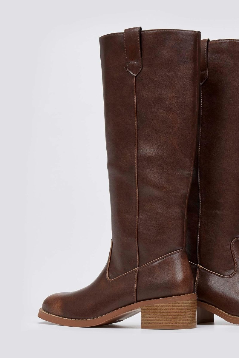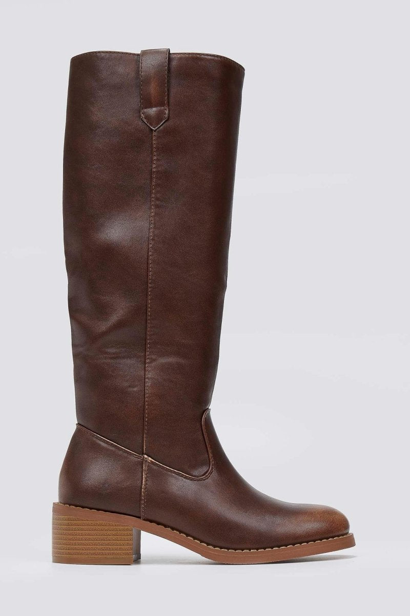 Μπότες με χαμηλό τετράγωνο τακούνι - ανοιχτό καφέ ματ