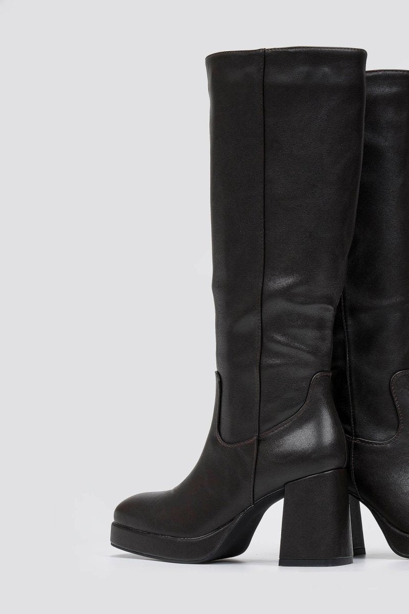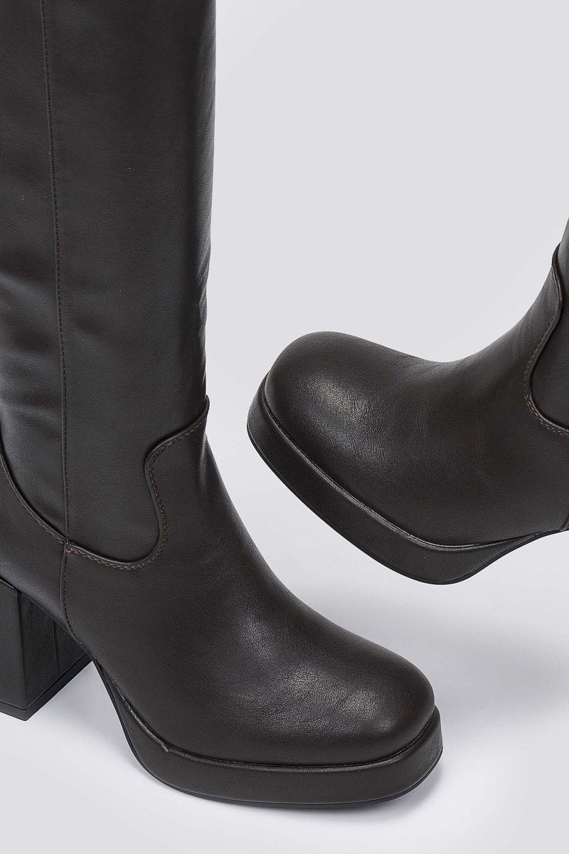 Μπότες πλατφόρμα με χοντρό τακούνι - σκούρο καφέ ματ