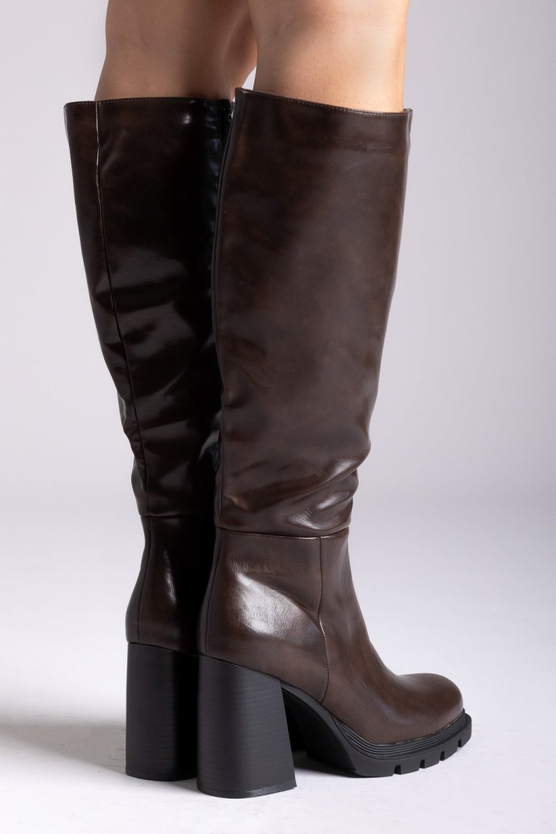 Μπότες πλατφόρμα - Σκούρο Καφέ Ματ