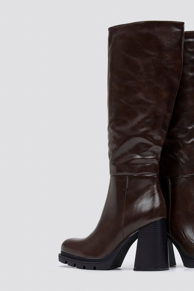 Μπότες πλατφόρμα - Σκούρο Καφέ Ματ