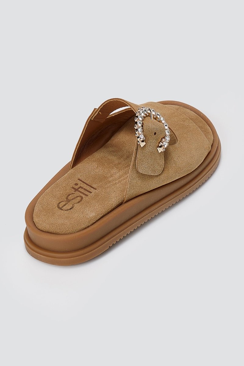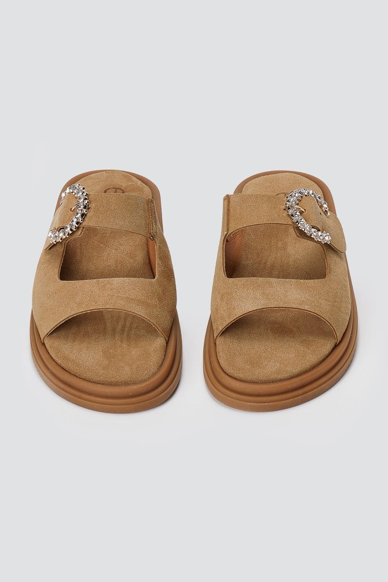Σανδάλια με αγκράφα Σουέντ - Μπεζ Σουέντ