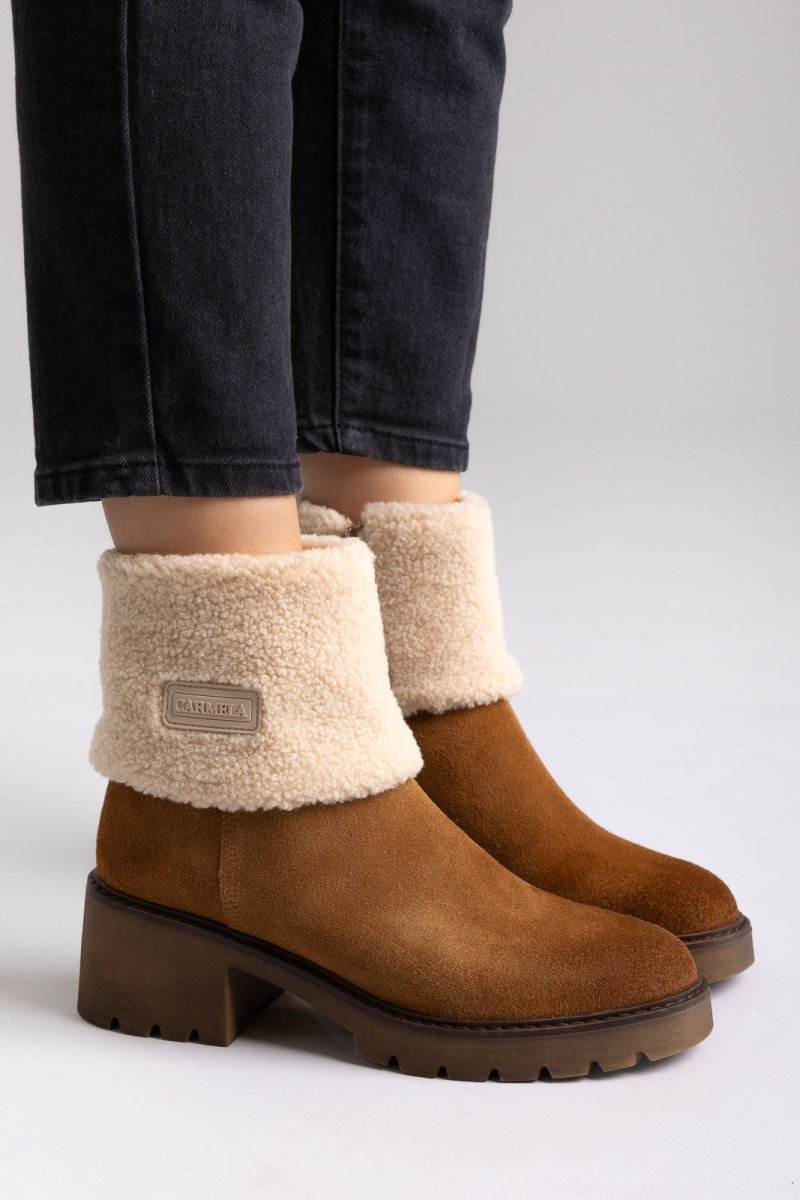 Carmela 162659 σουέτ μποτάκια με sherpa γυριστό τελείωμα - καμηλό σουέτ