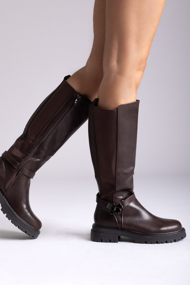 Μπότες με ελαστικό πλαϊνό - Σκούρο Καφέ Ματ
