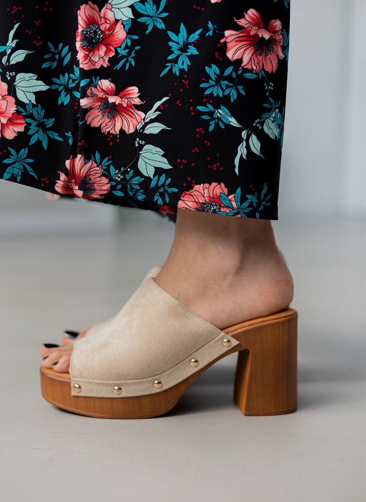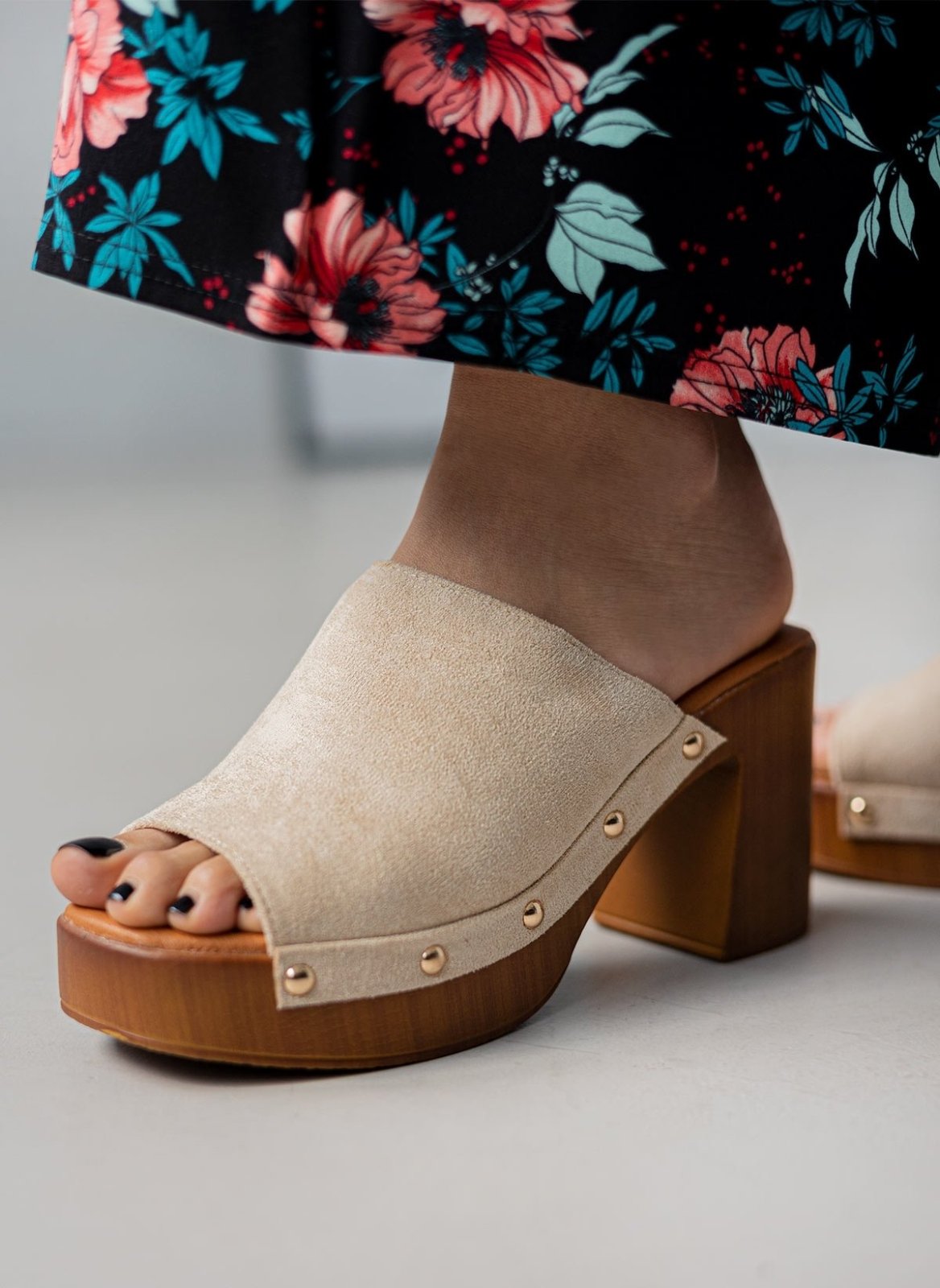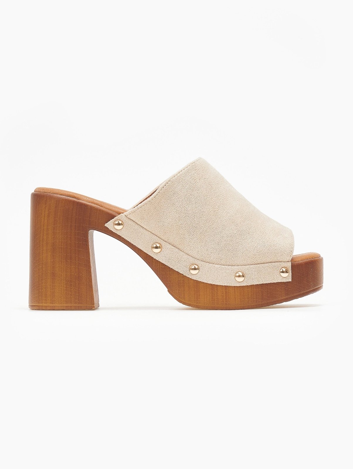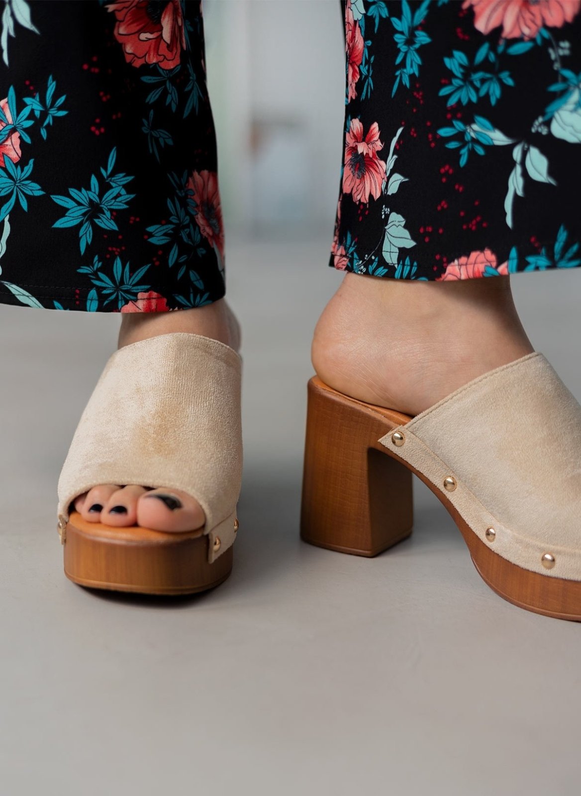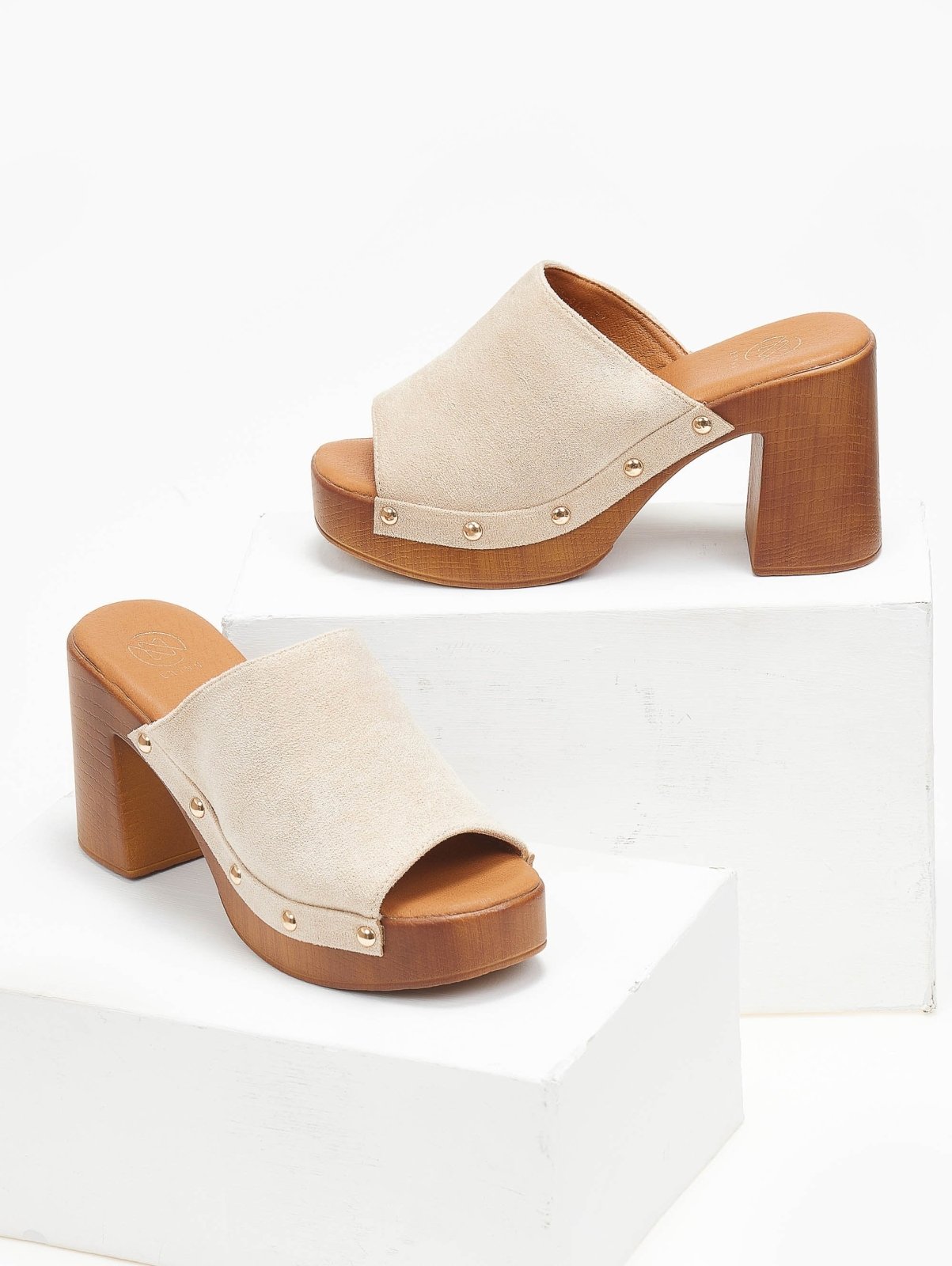 Clogs suede με χρυσά τρουκς Erynn - Μπεζ