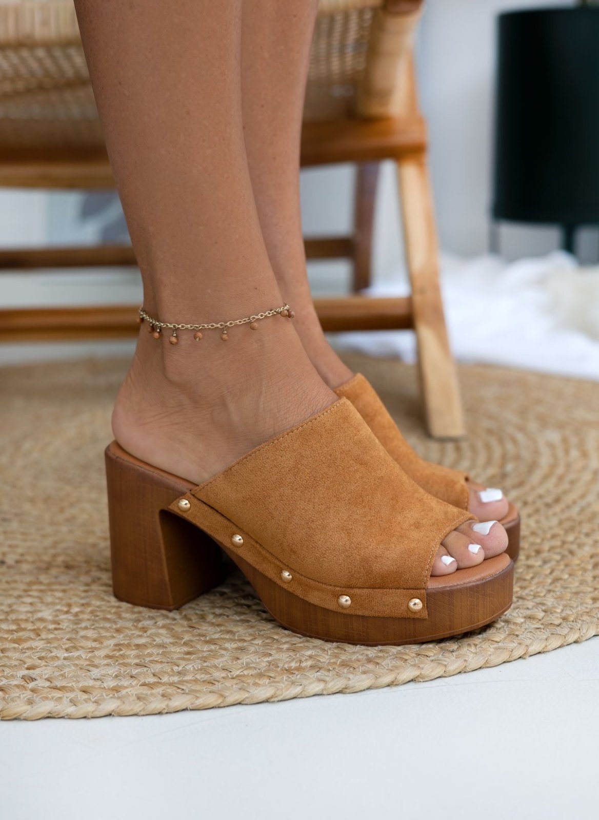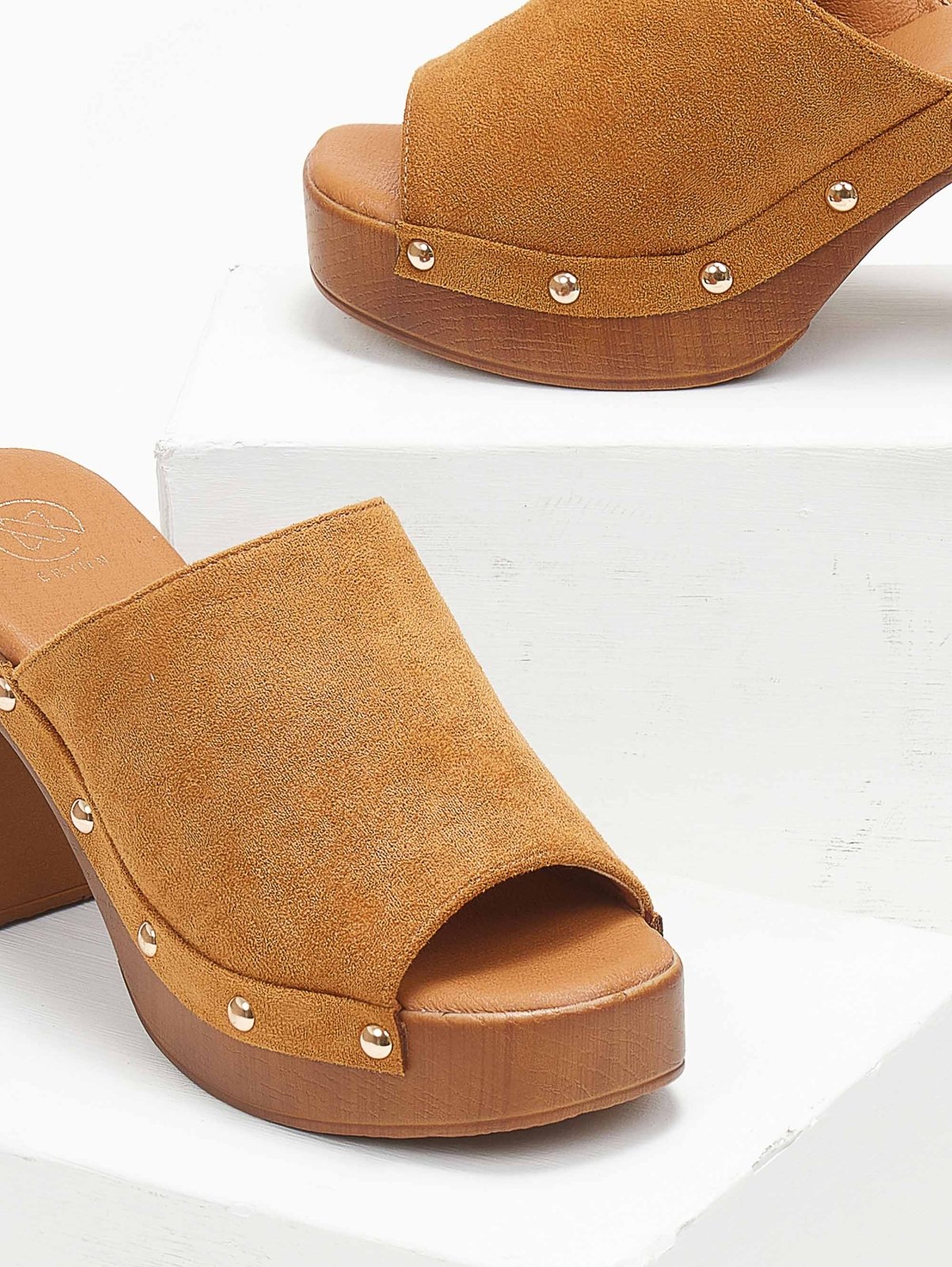 Clogs suede με χρυσά τρουκς Erynn - Κάμελ