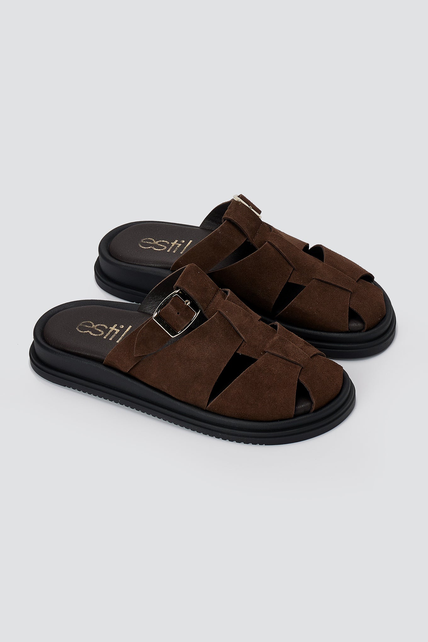 Σουέντ clogs με αγκράφα - Καφέ