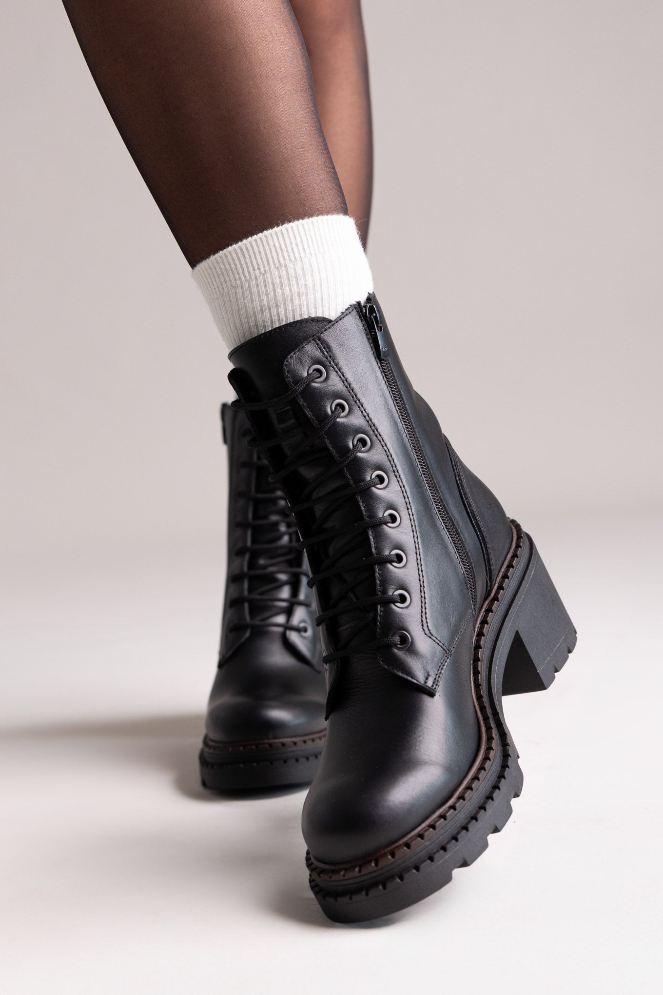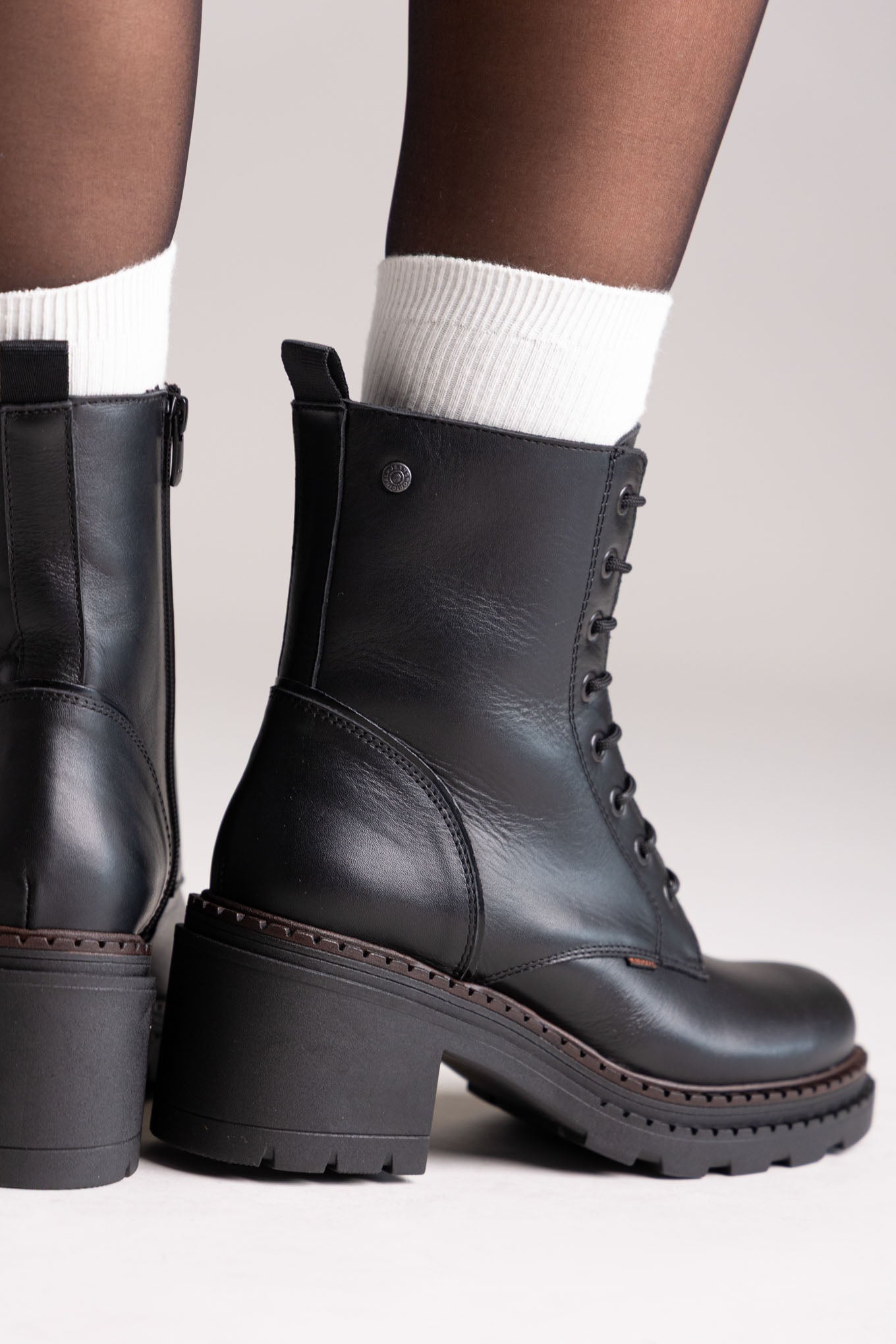 Γνήσιες δερμάτινες μπότες τύπου combat με Dryflex για άνεση και διαπνοή. Χοντρό τακούνι, μαλακή υποστήριξη και σταθερό κράτημα—σχεδιασμένες για όλη μέρα.