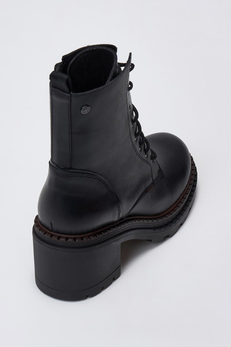 Γνήσιες δερμάτινες μπότες τύπου combat με Dryflex για άνεση και διαπνοή. Χοντρό τακούνι, μαλακή υποστήριξη και σταθερό κράτημα—σχεδιασμένες για όλη μέρα.