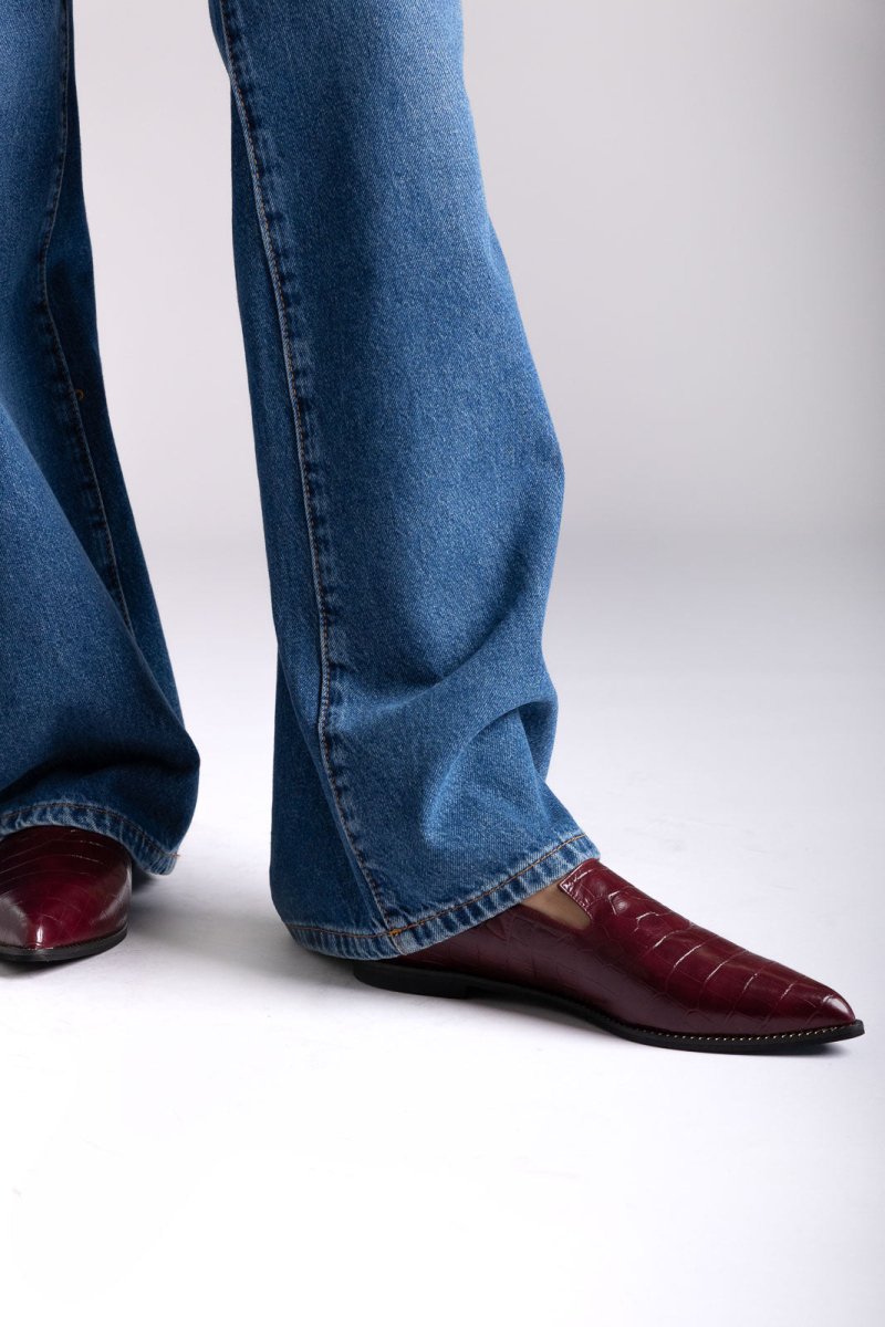 Μυτερά γυναικεία loafers με croc-embossed υφή, μεταλλική λεπτομέρεια στο περίγραμμα και δερμάτινο πάτο. Ελληνικής κατασκευής, άνεση και κομψό slip-on στυλ σχεδιασμένο για τη σύγχρονη γυναίκα.
