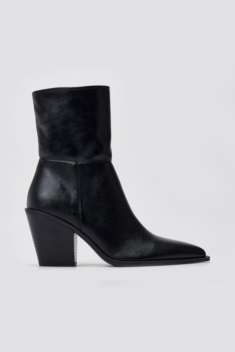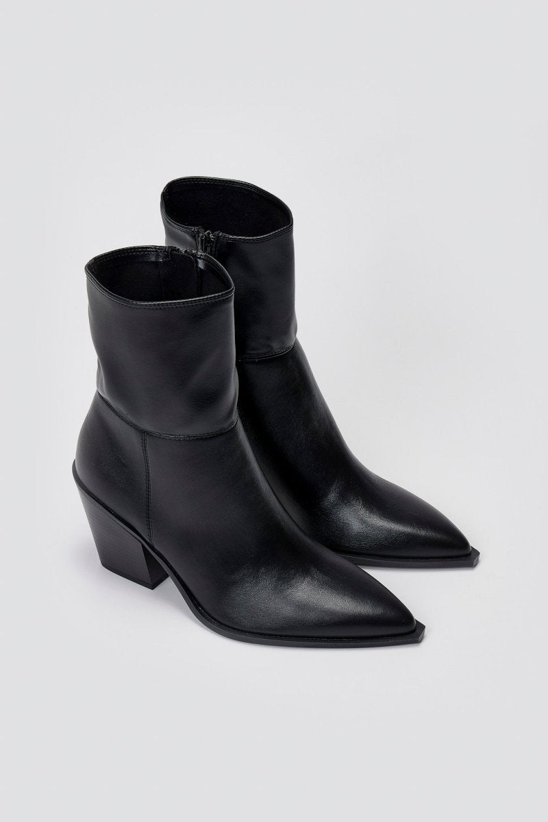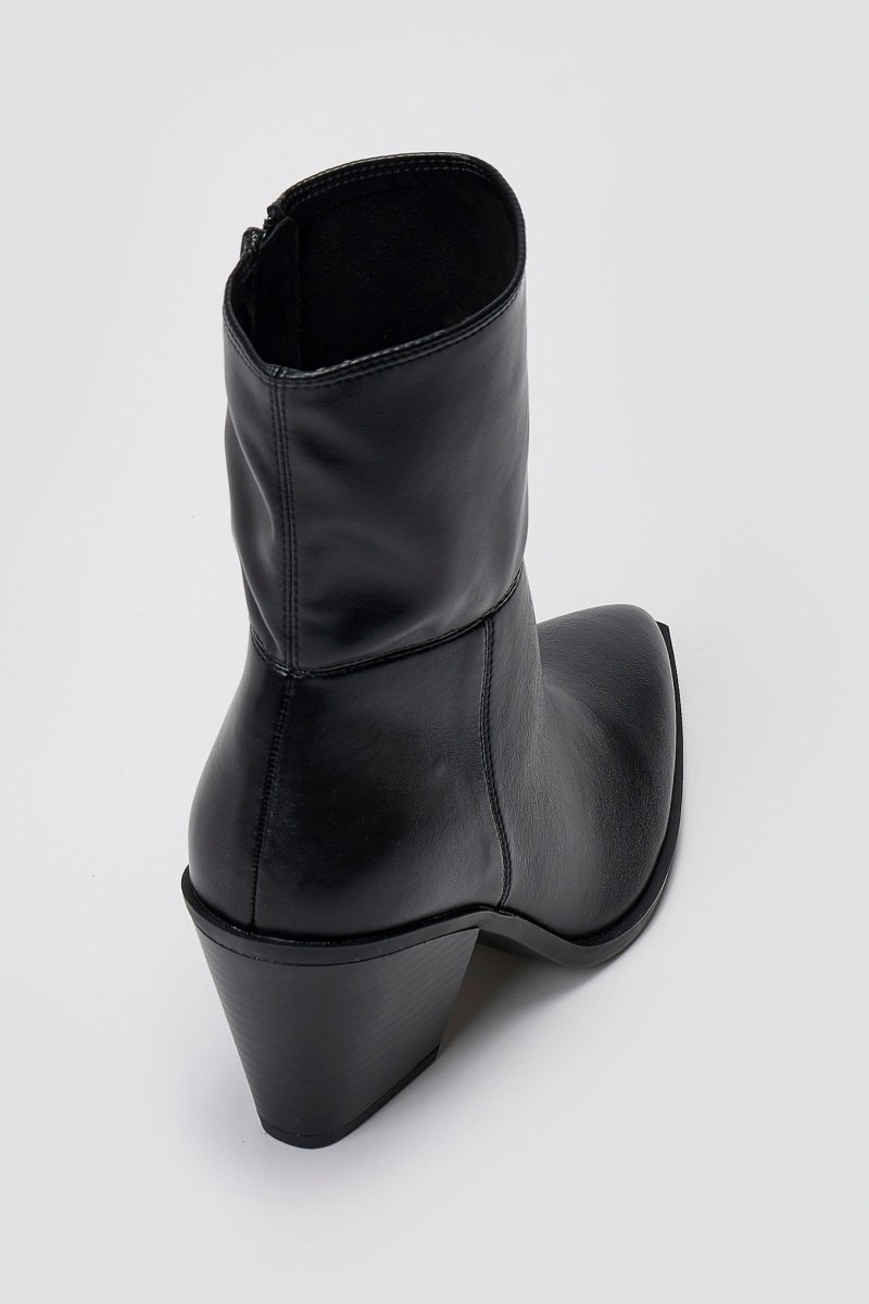 Κομψά μποτάκια cowboy από την Corina με μυτερή μύτη, ψηλό τετράγωνο τακούνι και φερμουάρ στο πλάι. Δυτική έμπνευση με κομψότητα και μαλακή αντικραδασμική σόλα για άνεση όλη μέρα.