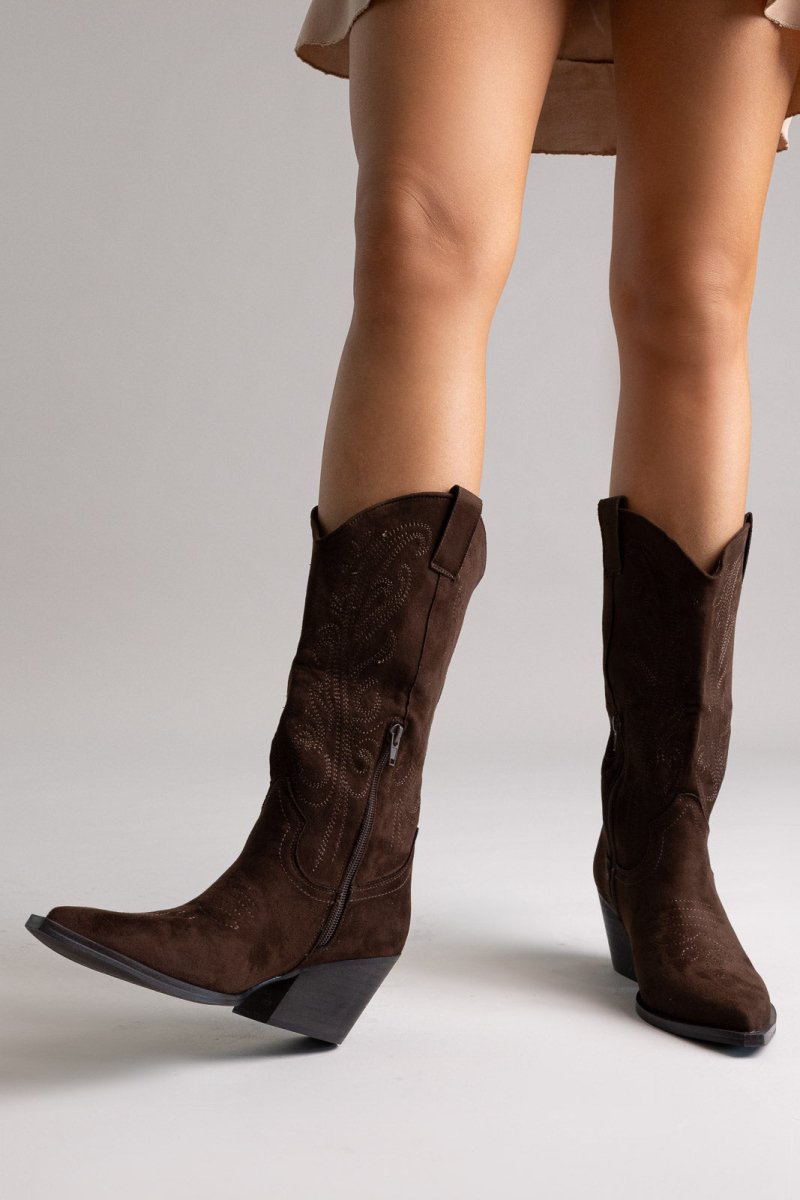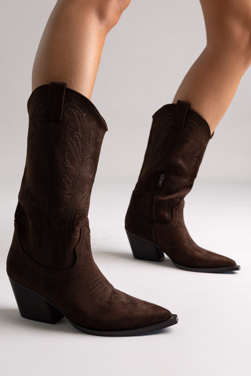 Μπότες Corina cowboy μεσαίου ύψους - Καφέ Σουέτ