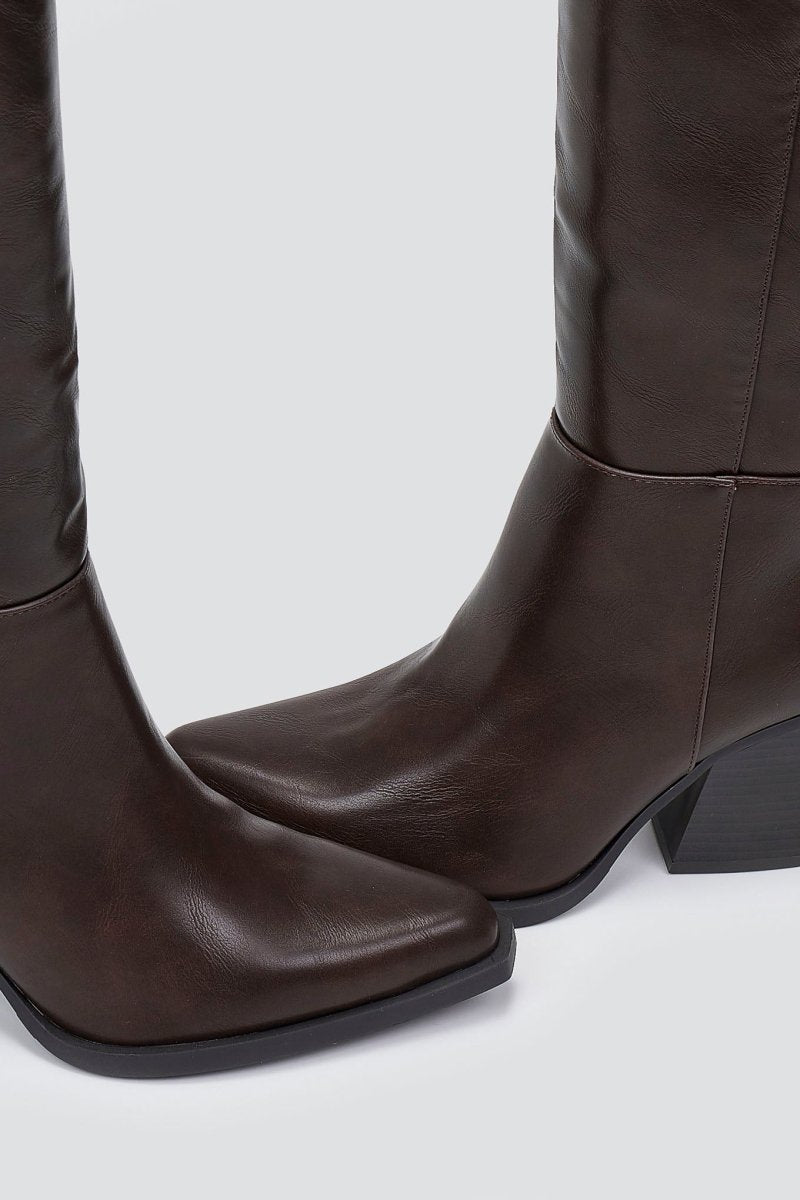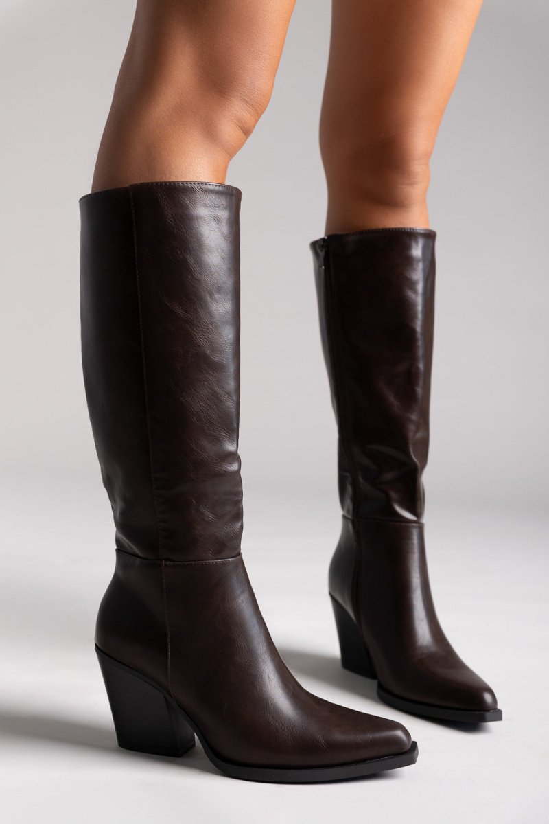 Cowboy Μπότες με τετράγωνο τακούνι - Σκούρο Καφέ ματ
