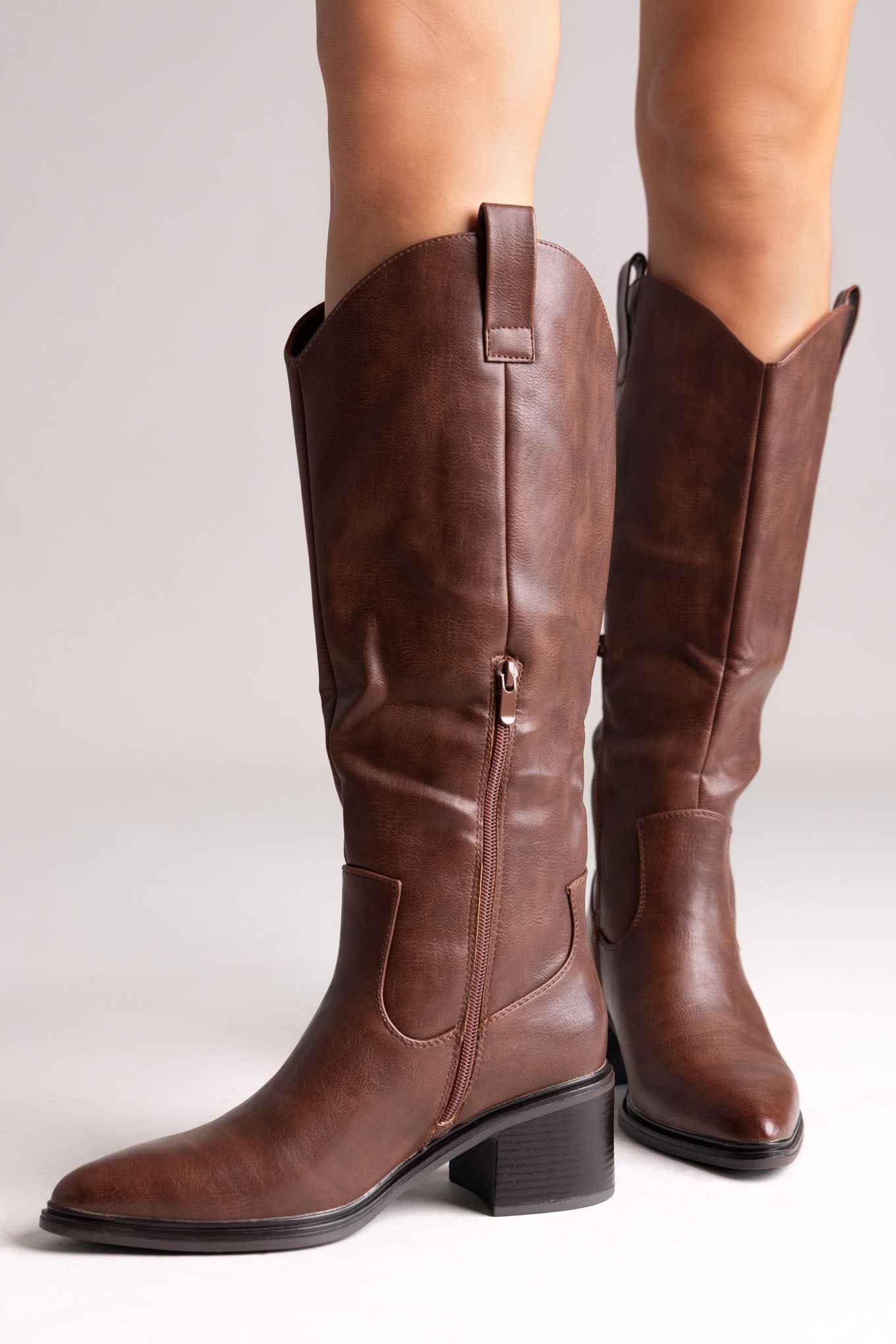 Κομψές μπότες cowboy με μυτερή μύτη και χαμηλό τακούνι. Πλαϊνό φερμουάρ για εύκολη εφαρμογή και μοντέρνο western στυλ με άνεση όλη μέρα.