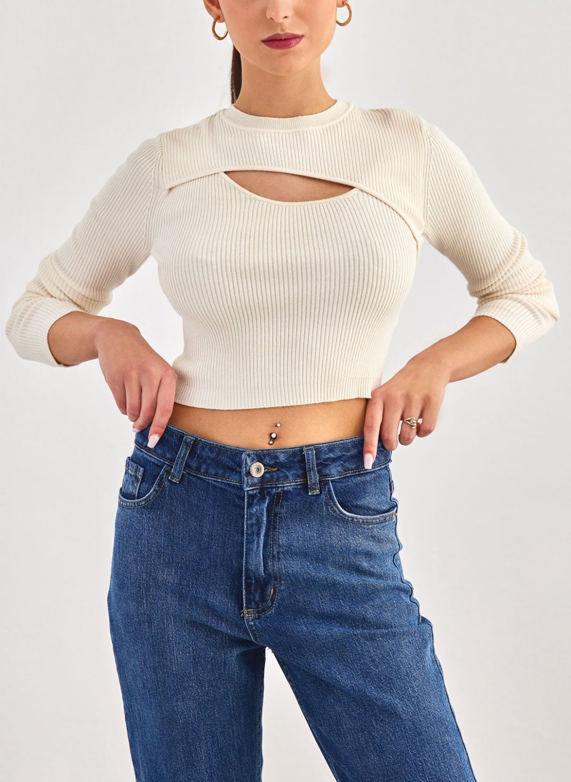 Crop top μακρυμάνικο με cut out ΜΟΝΟ 15267966 - Ζαχαρί