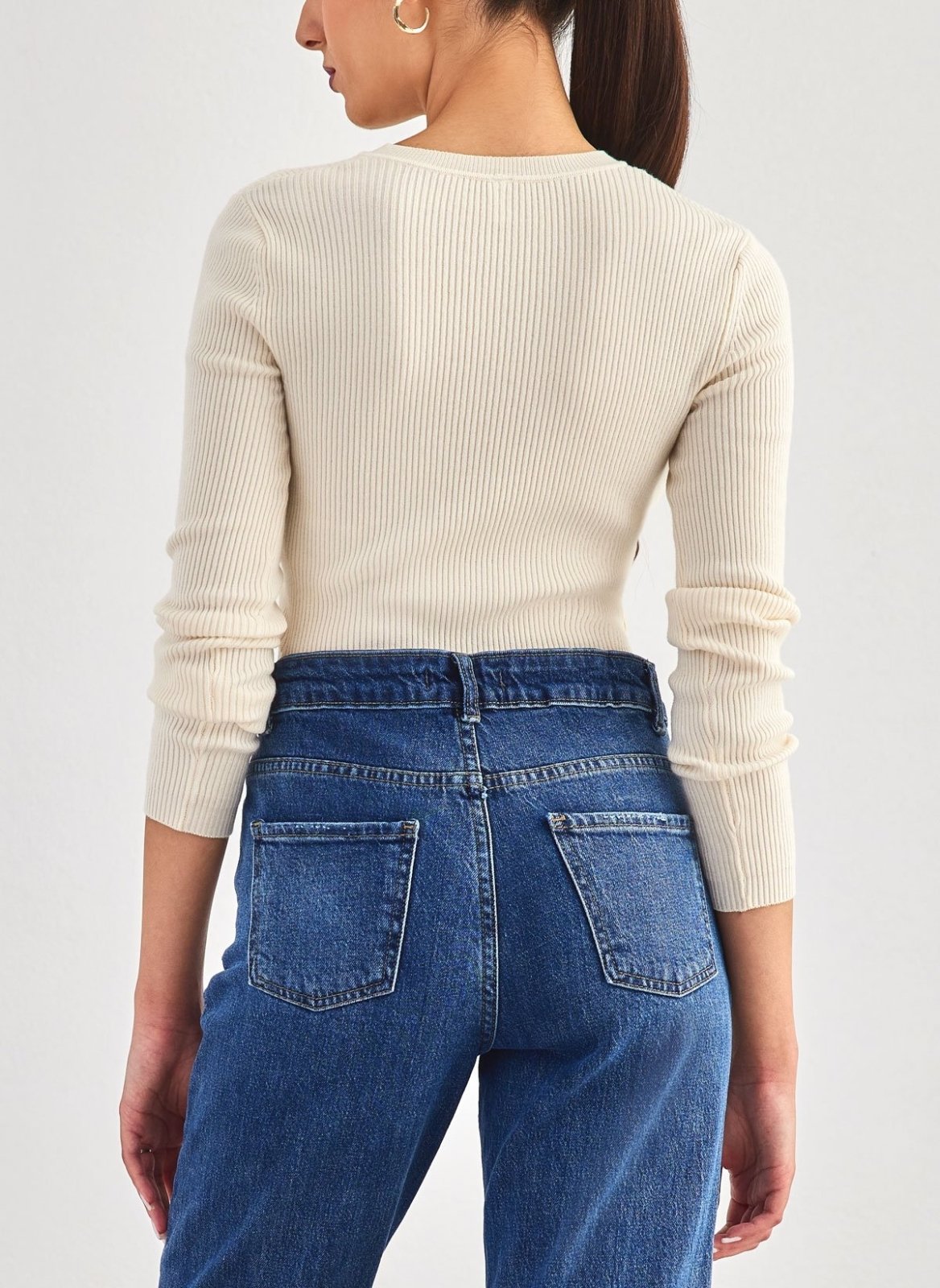 ΜΟΝΟ Crop top μακρυμάνικο. Έχει κόψει σχέδιο στη μπροστινή πλευρά. Εφαρμοστή γραμμή.