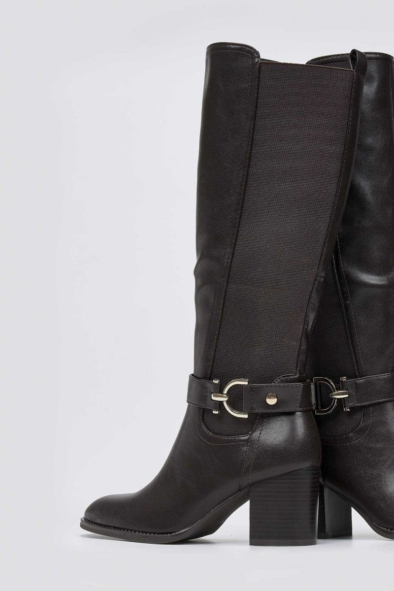 Μπότες ERRYN με τετράγωνο τακούνι - Σκούρο Καφέ Ματ