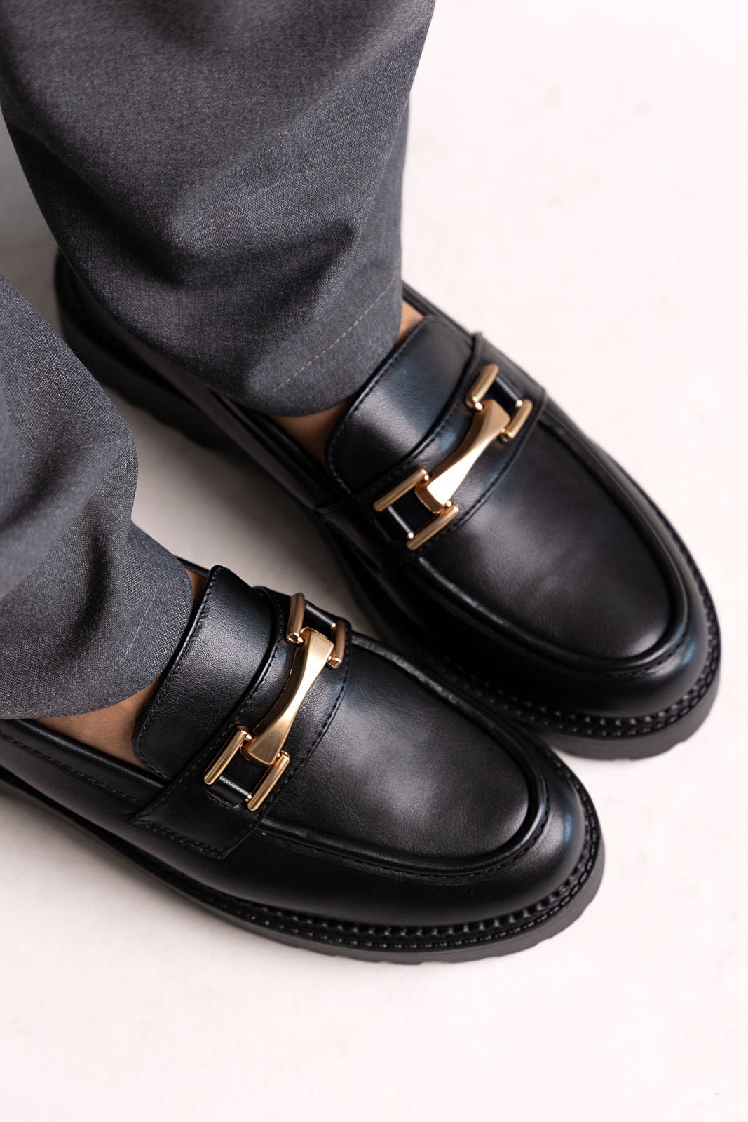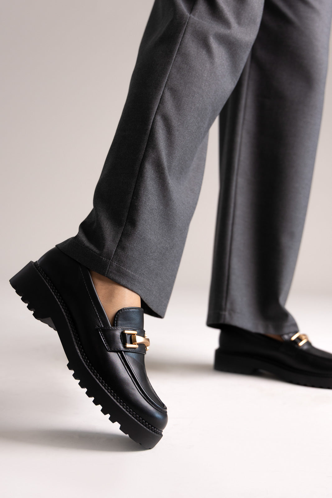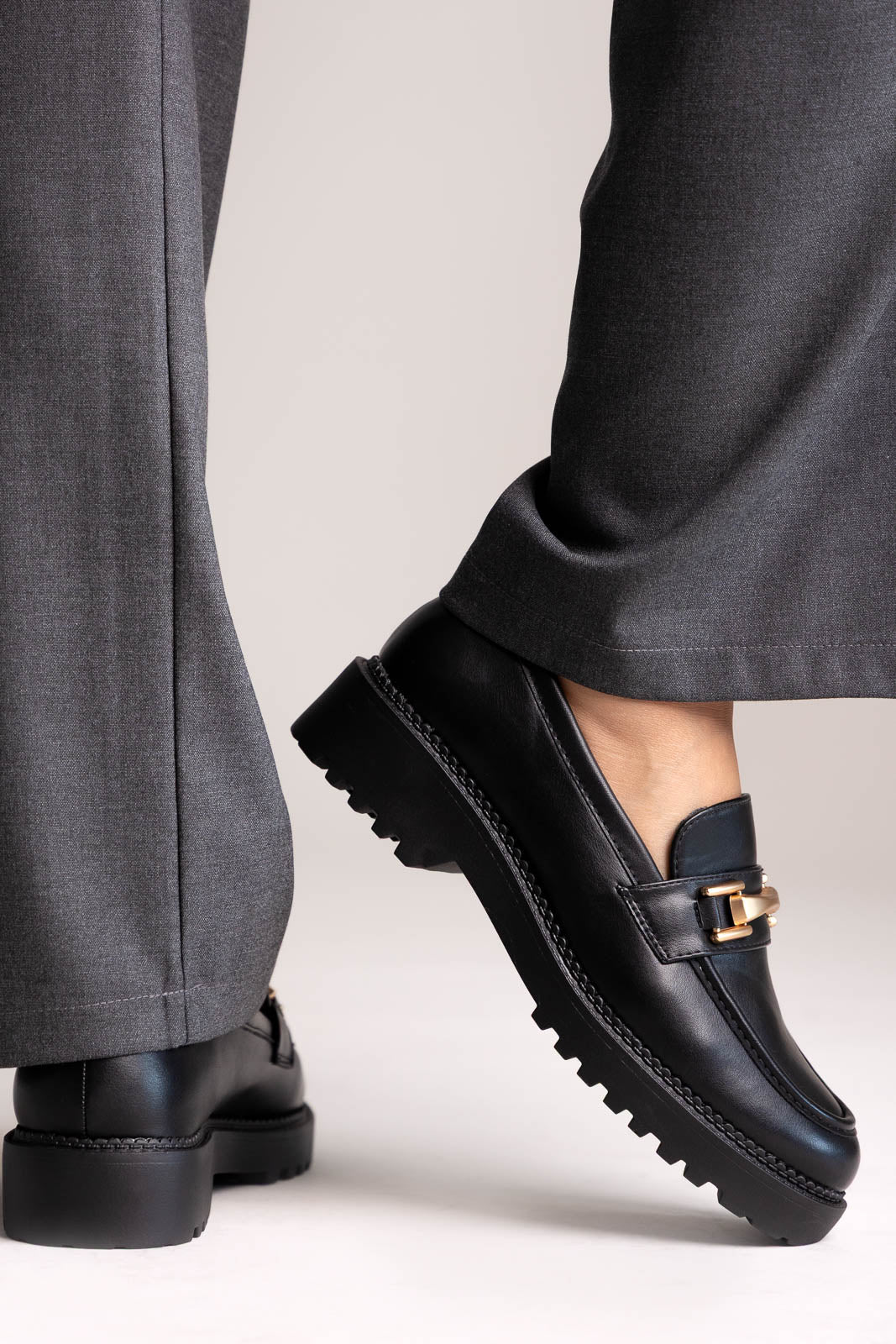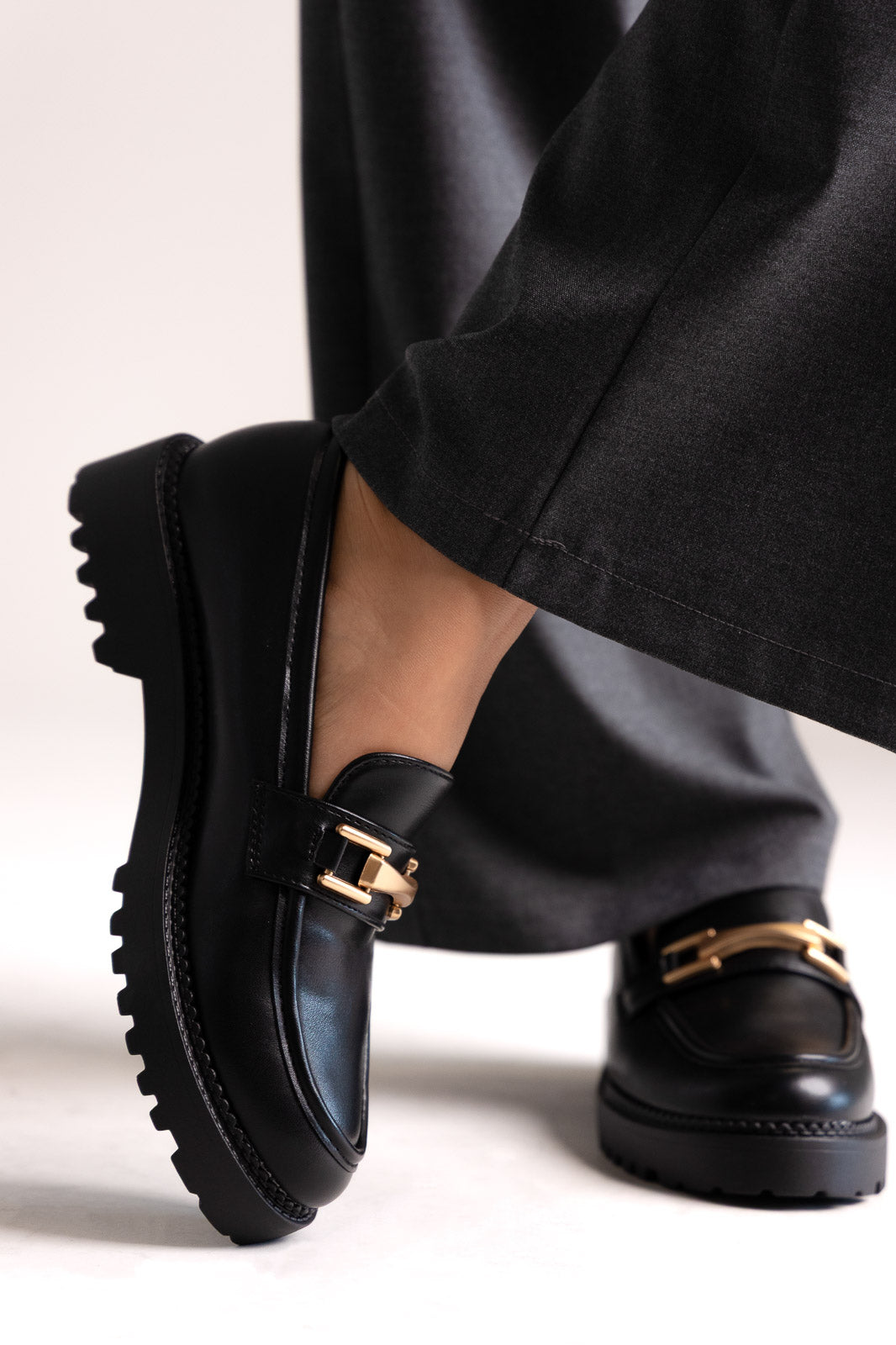 Μοντέρνα chunky loafers με εκλεπτυσμένη μεταλλική λεπτομέρεια. Ένα τολμηρό αλλά κομψό σχέδιο, που συνδυάζει άνεση και διαχρονική φινέτσα για καθημερινό στυλ.