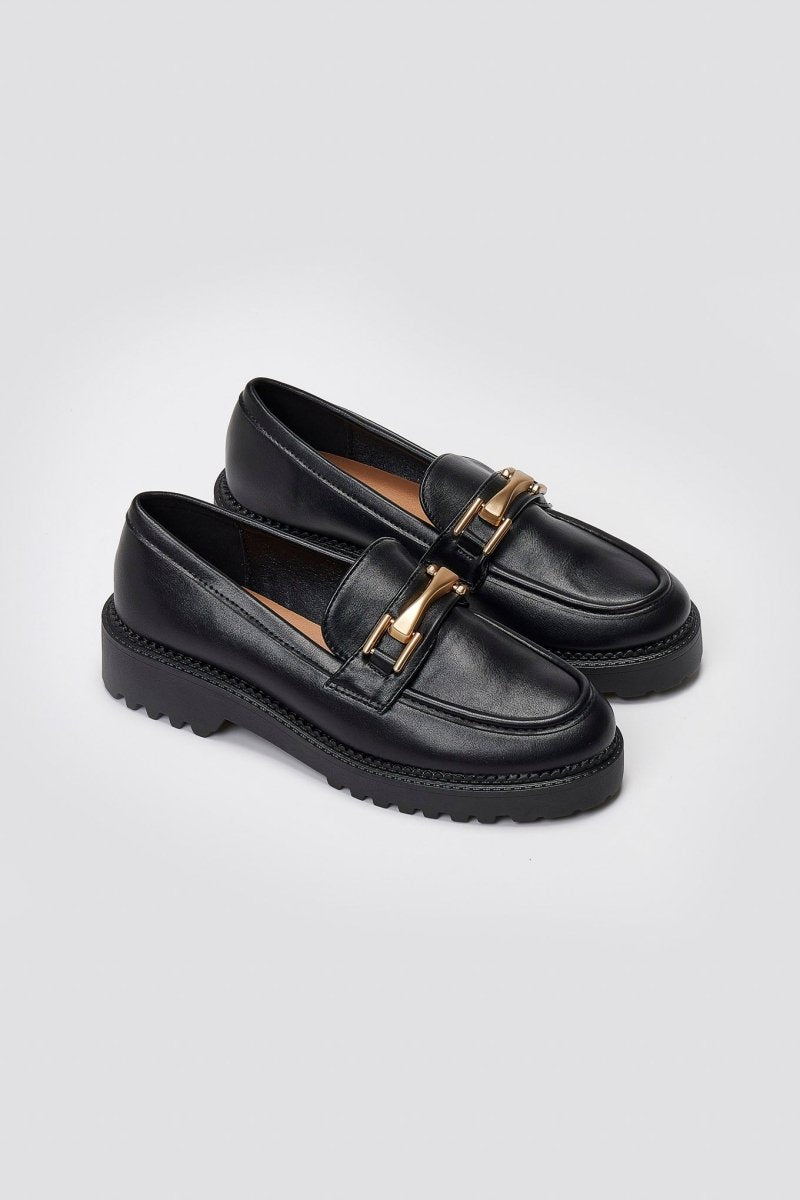 Μοντέρνα chunky loafers με εκλεπτυσμένη μεταλλική λεπτομέρεια. Ένα τολμηρό αλλά κομψό σχέδιο, που συνδυάζει άνεση και διαχρονική φινέτσα για καθημερινό στυλ.