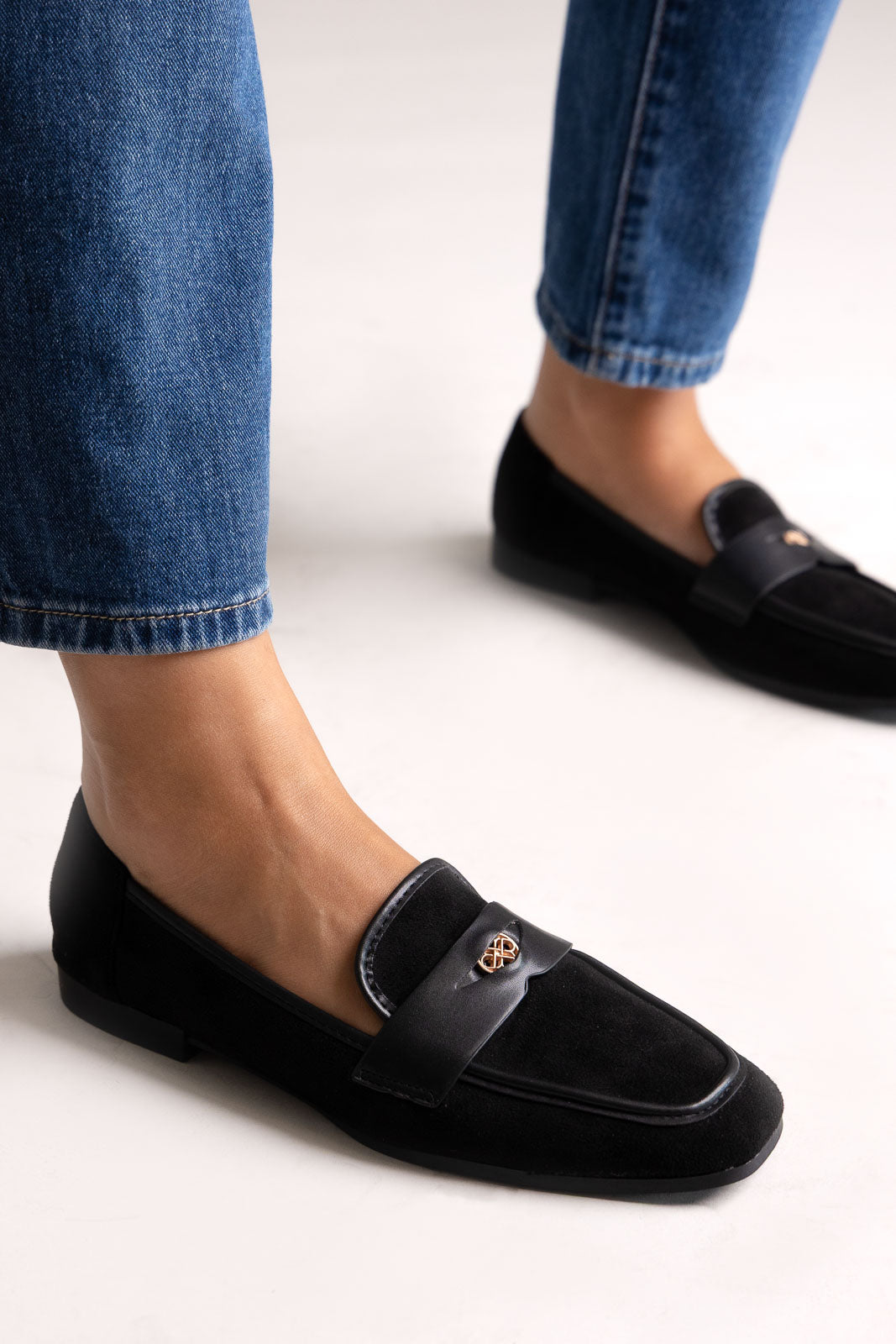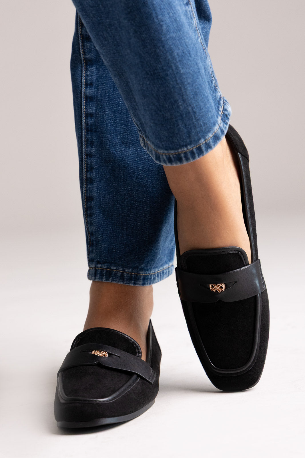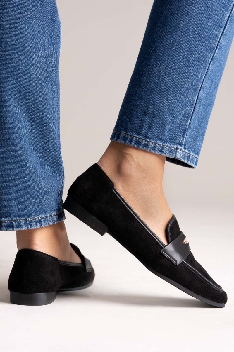 Κομψά flat loafers με διακριτική μεταλλική λεπτομέρεια. Μίνιμαλ σχεδιασμός, κατασκευασμένα για σύγχρονες γυναίκες που αναζητούν εκλεπτυσμένη άνεση και διαχρονικό στυλ.