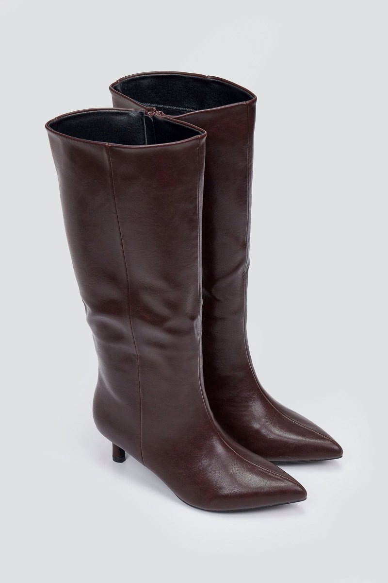 Κομψές μυτερές μπότες με μοντέρνο τακούνι kitten και κομψό κλείσιμο με φερμουάρ. Ένα εκλεπτυσμένο κομμάτι δήλωσης, ιδανικό για την αναβάθμιση των σύγχρονων εμφανίσεων από το πρωί μέχρι το βράδυ.