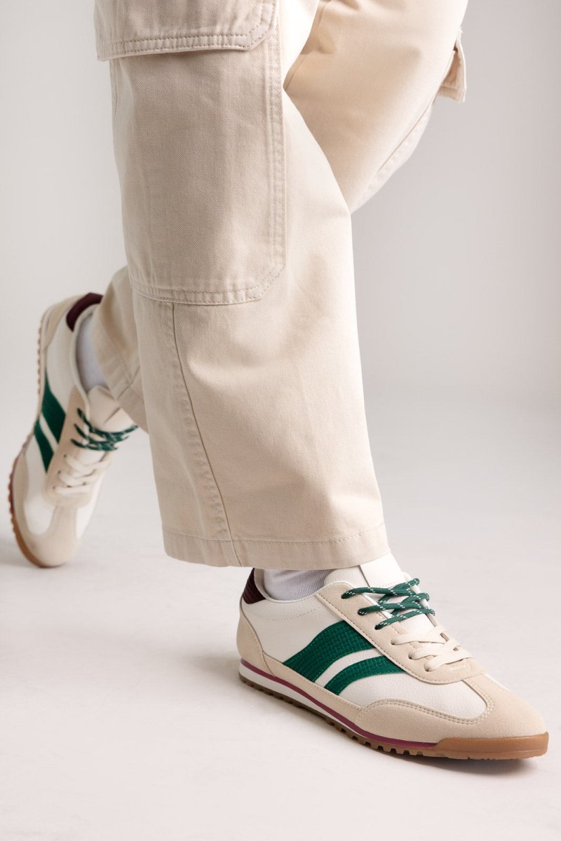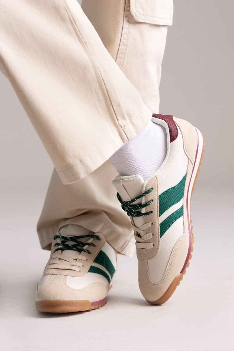 Στυλάτα χαμηλά sneakers σε ματ και σουέτ δίχρωμο design. Περιλαμβάνουν δύο σετ κορδόνια, σχεδιασμένα για γυναίκες που εκτιμούν την άνεση και τη μοντέρνα κομψότητα.