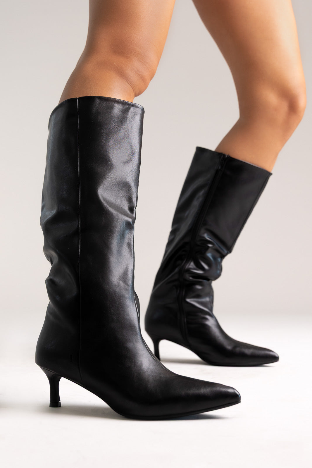 Κομψές pointed μπότες με μοντέρνο kitten τακούνι και διακριτικό φερμουάρ. Ένα εκλεπτυσμένο κομμάτι που αναβαθμίζει εύκολα day-to-night εμφανίσεις.