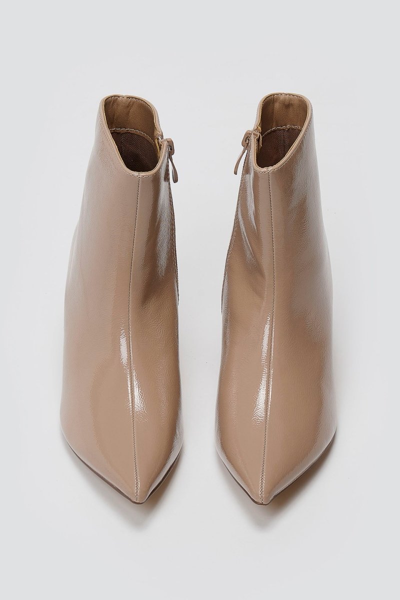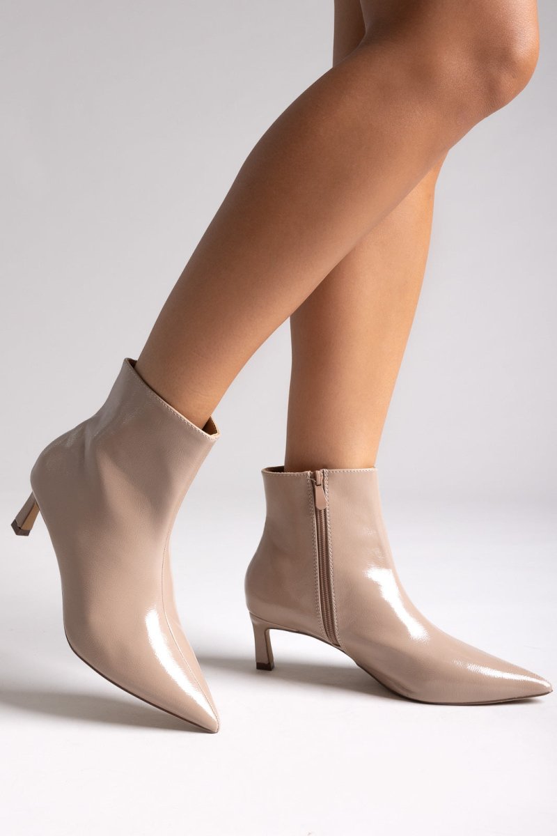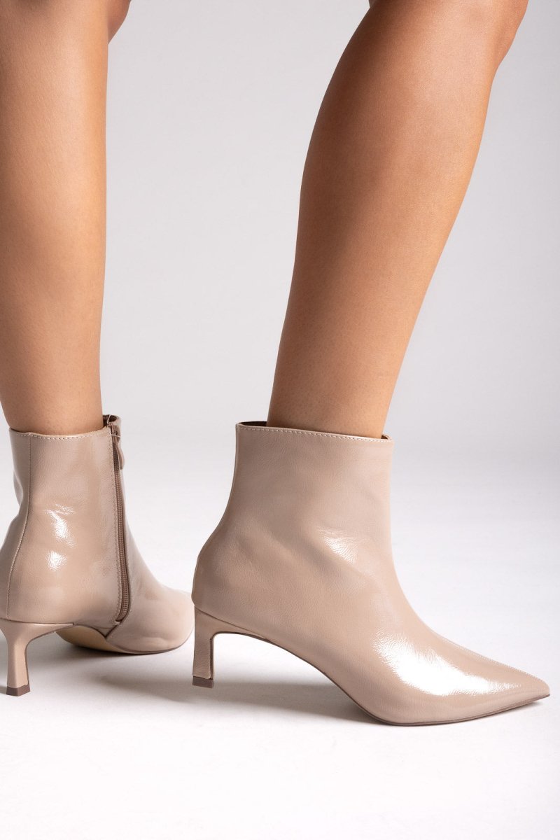 ERYNN Μυτερά Λουστρίνι Μποτάκια με Χαμηλό Τακούνι - Μπεζ Τσαλακωμένο Λουστρίνι