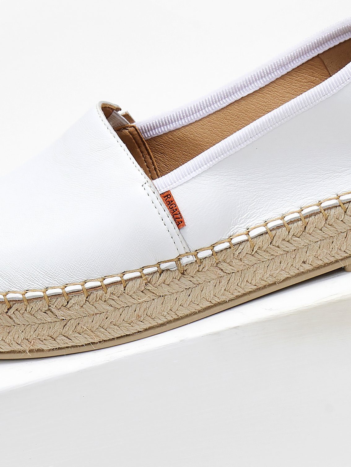 Εσπαντρίγιες από γνήσιο δέρμα Ragazza. Διακριτικό λάστιχο στην εσωτερική τους πλευρά για καλύτερη εφαρμογή. έχουν σχόλα ντυμένη με σχοινί. Η Ελληνική εταιρεία Ragazza ειδικεύεται στα ανατομικά (comfort) παπούτσια τα οποία διαθέτουν την κορυφαία τεχνολογία Dryflex στο εσωτερικό τους, που προσφέρει απόλυτη διαπνοή, απορρόφηση κραδασμών και προστασία από οσμές. Είναι η καλύτερη επιλογή για ατελείωτες ώρες και άνεση.