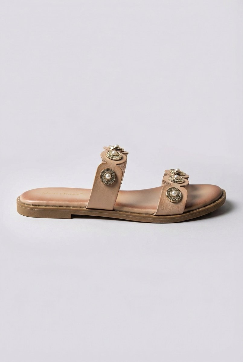 Σανδάλια με μεταλλικές λεπτομέρειες - μπεζ