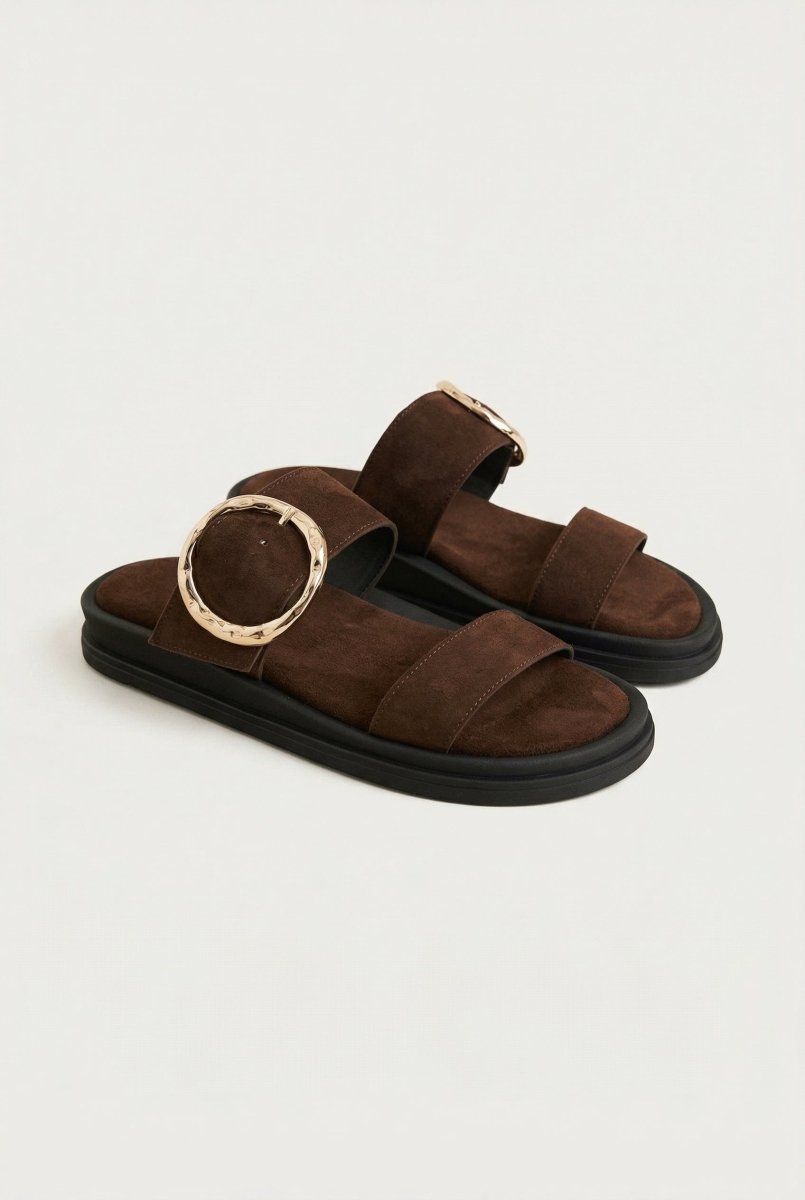 Flatform σανδάλια με αγκράφα - Καφέ Σουέντ