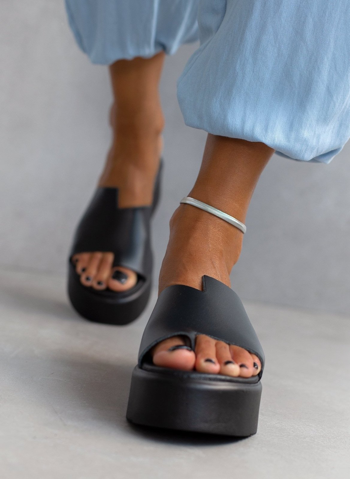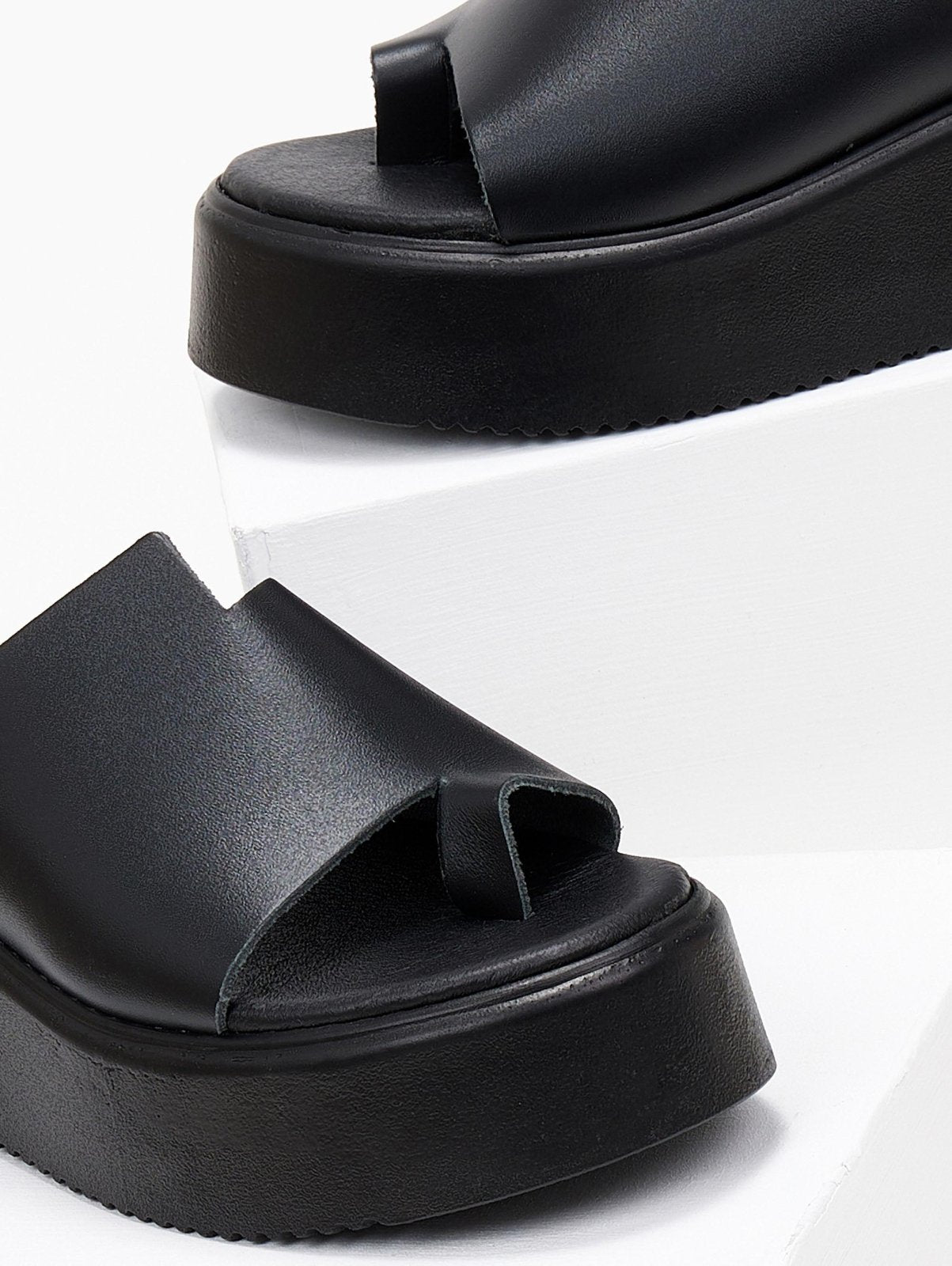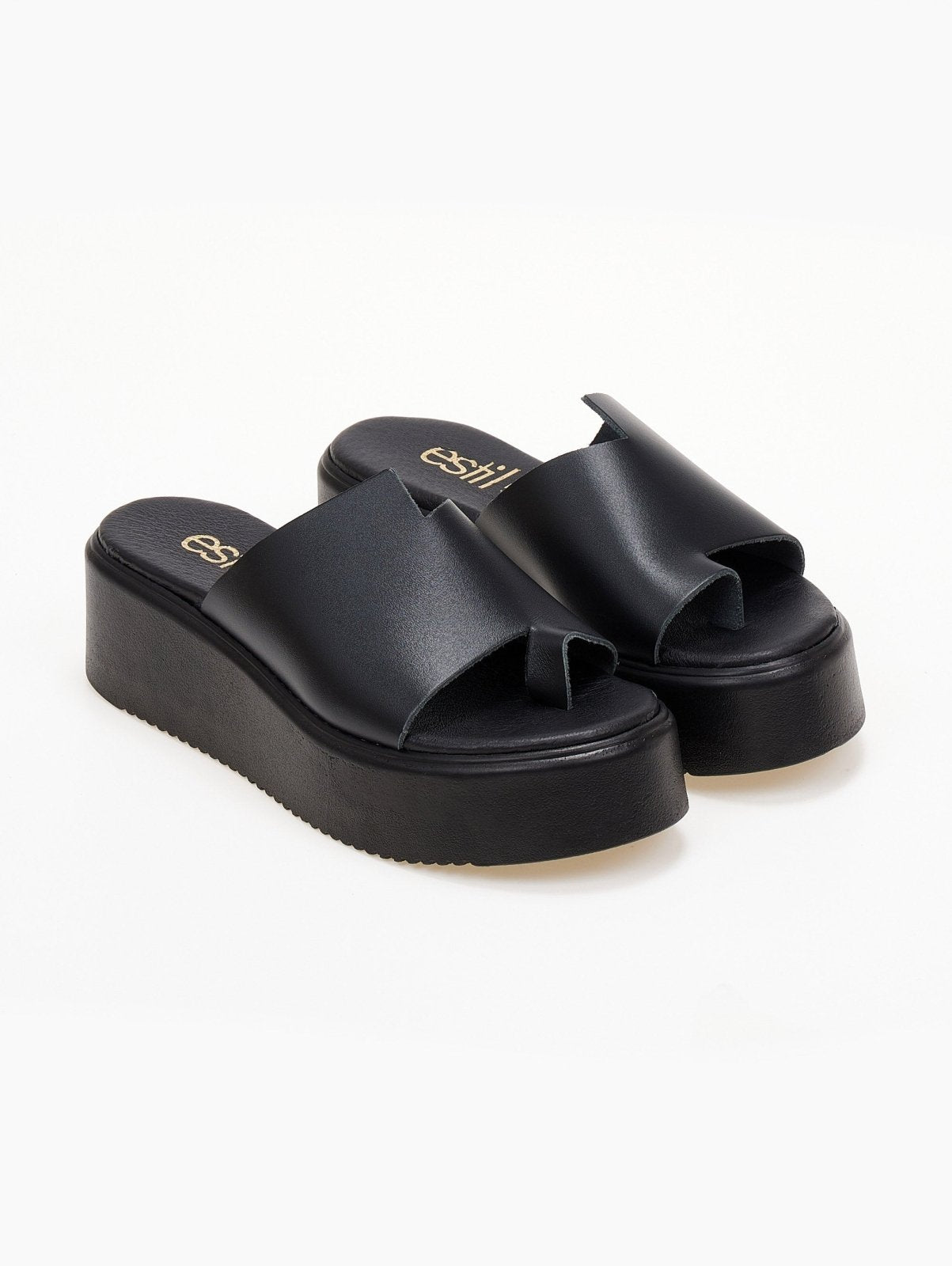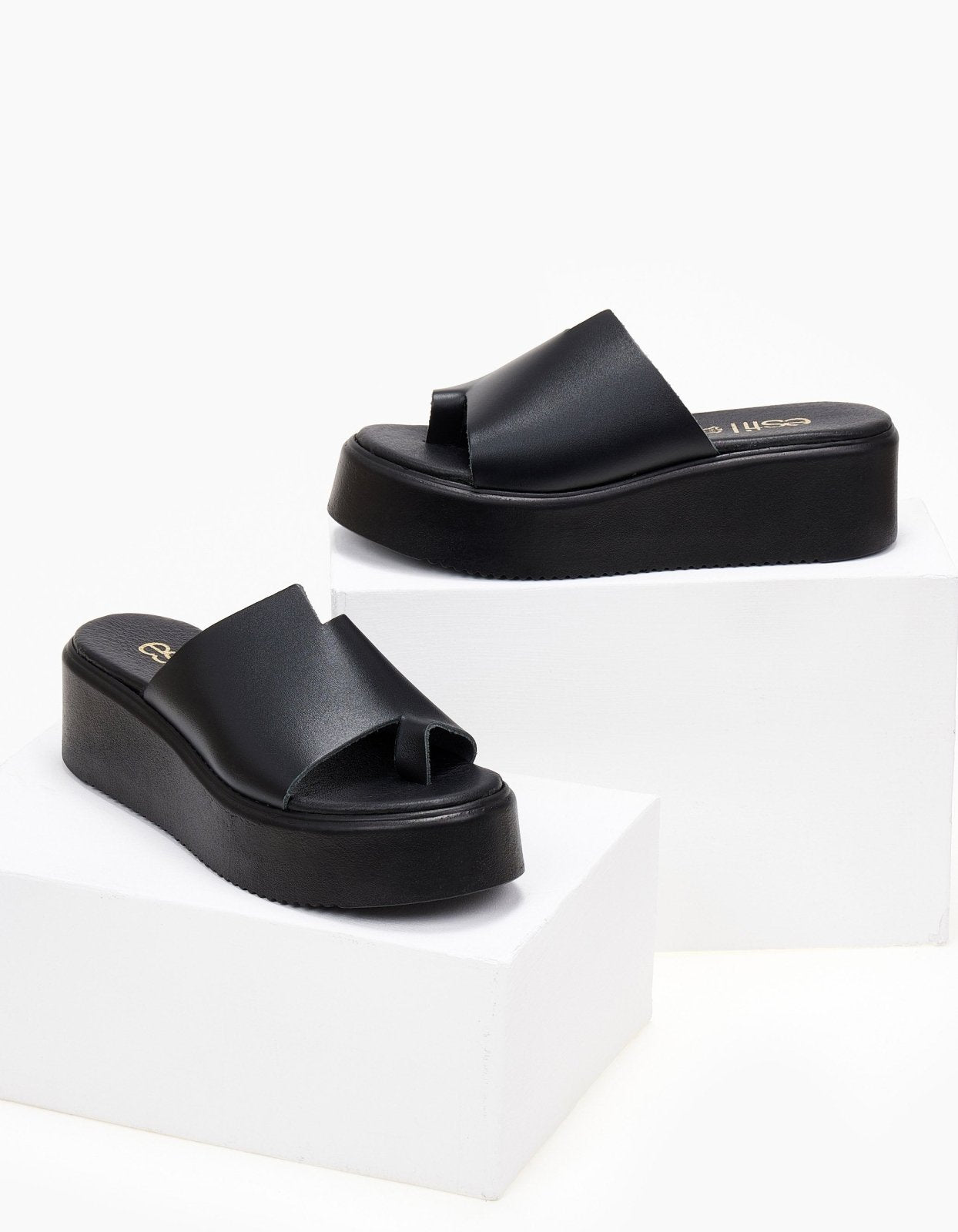 Flatforms δερμάτινα με άνιση φάσα estil - Μαύρο