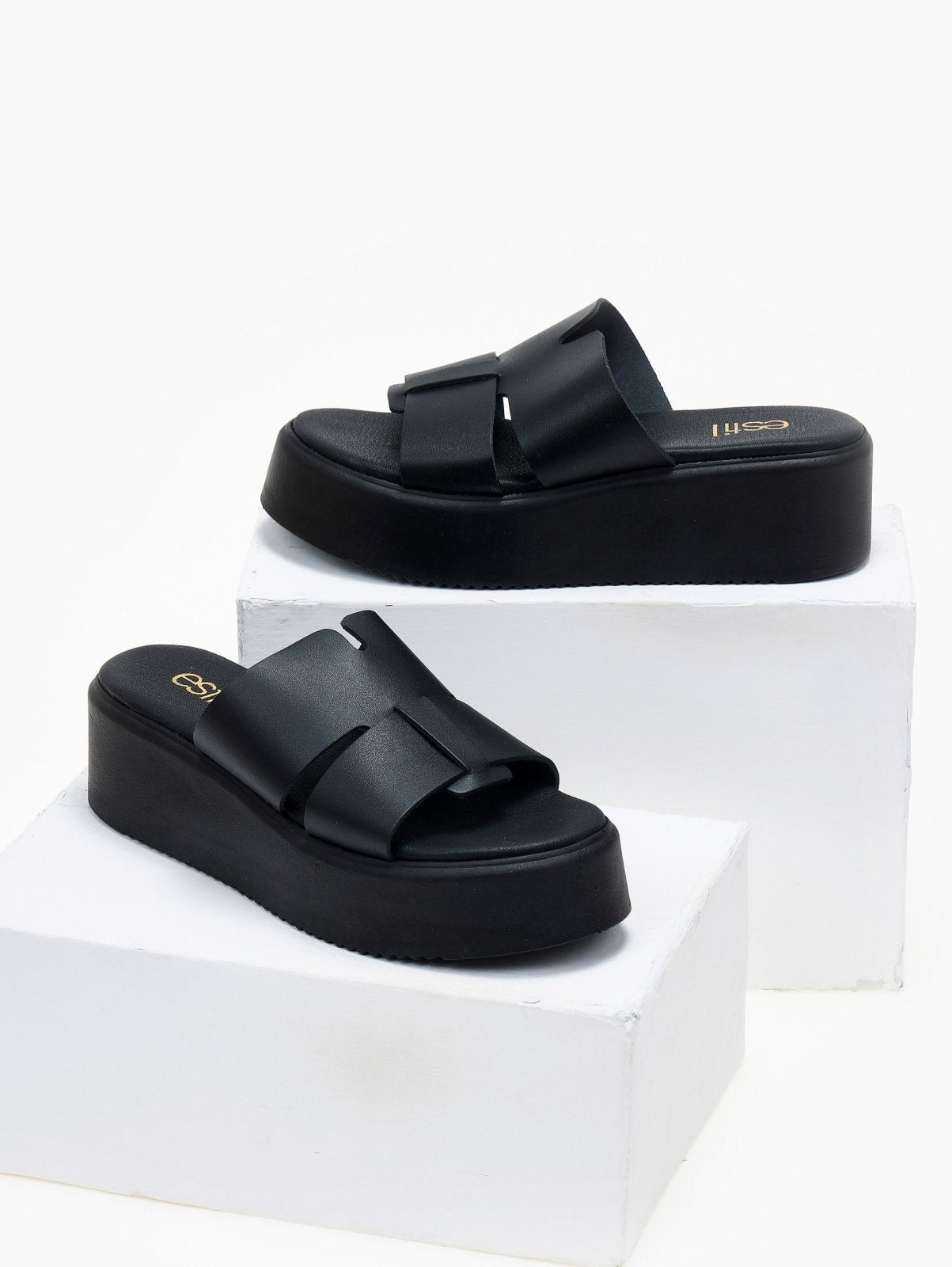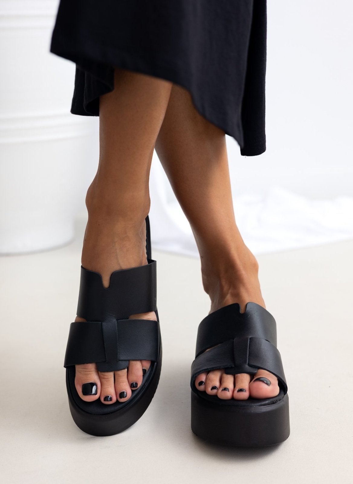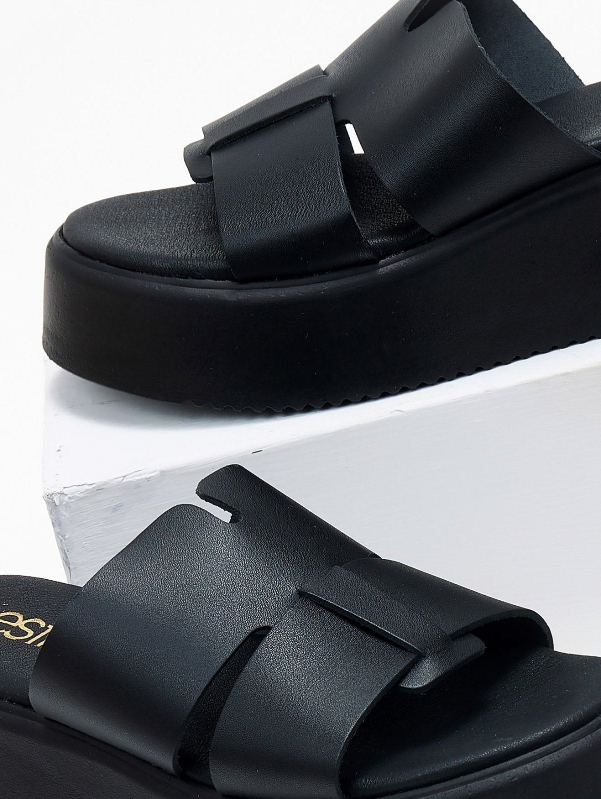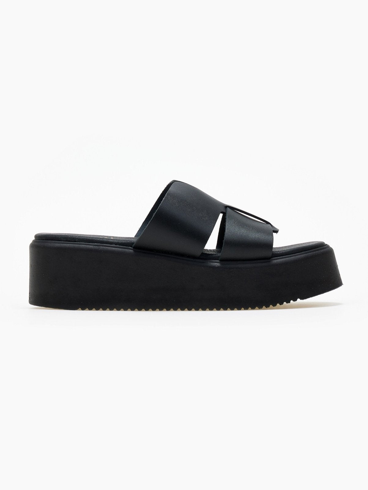 Flatforms δερμάτινα Estil. Φαρδιά φάσα με ανοίγματα. Μαλακός πάτος με ενίσχυση. Στρογγυλή γραμμή. Ελληνικής κατασκευής,χειροποίητα.