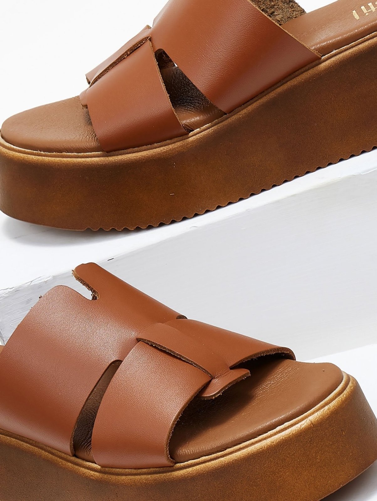 Flatforms δερμάτινα Estil. Φαρδιά φάσα με ανοίγματα. Μαλακός πάτος με ενίσχυση. Στρογγυλή γραμμή. Ελληνικής κατασκευής,χειροποίητα.