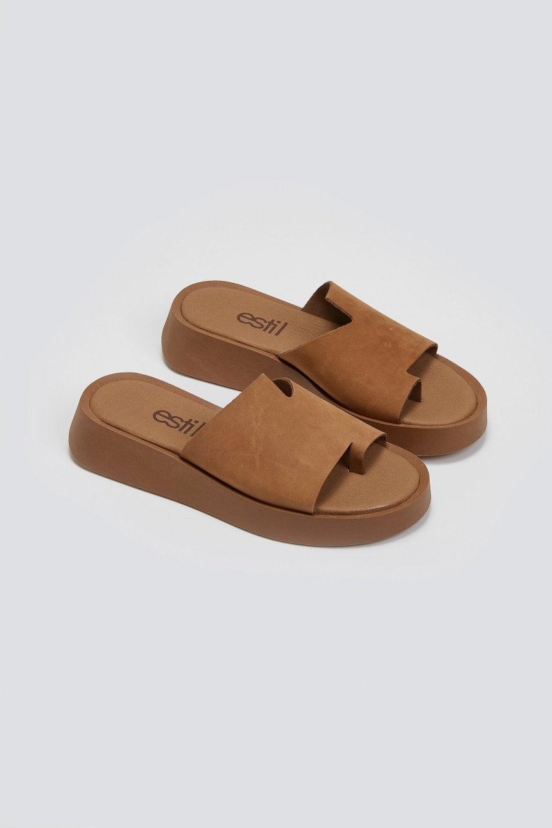 Flatforms δερμάτινα nubuck σανδάλια Estil - Κάμελ