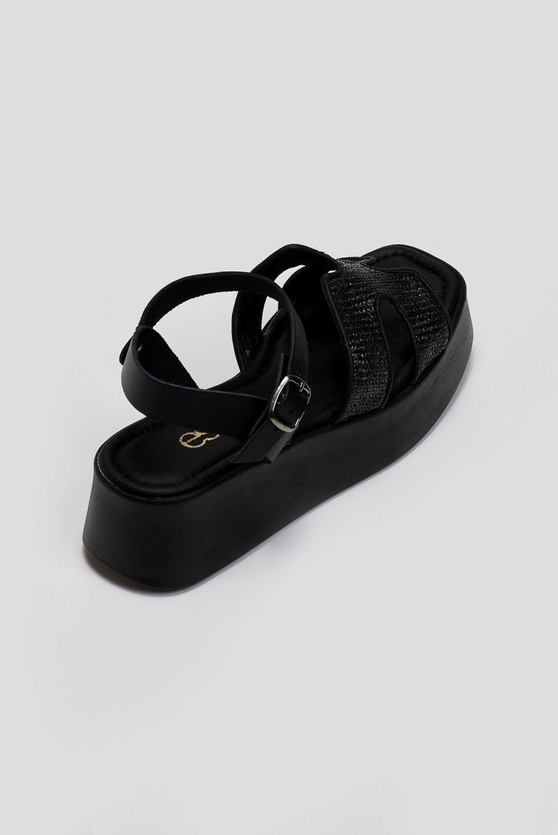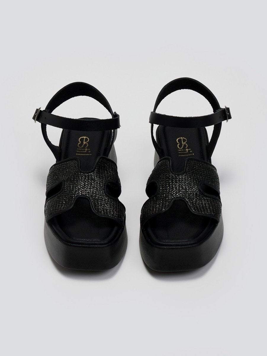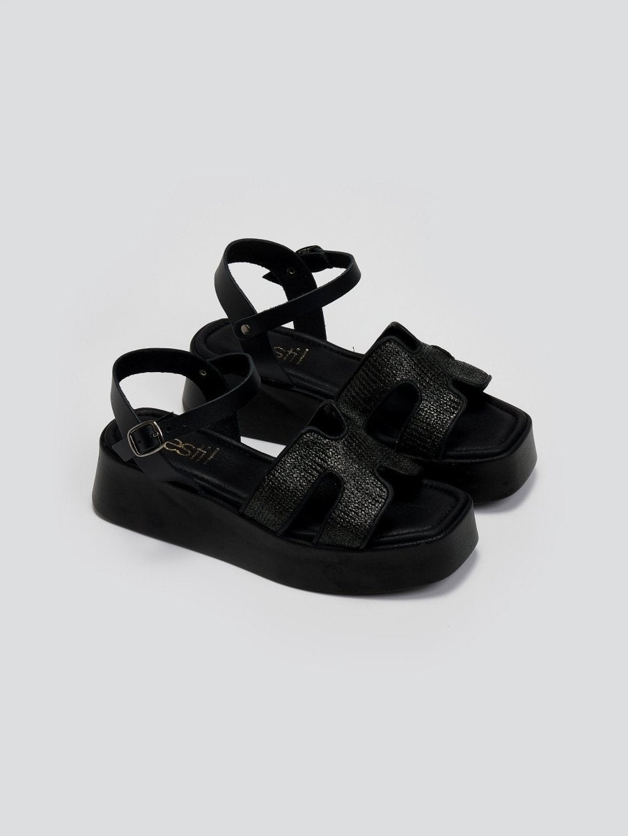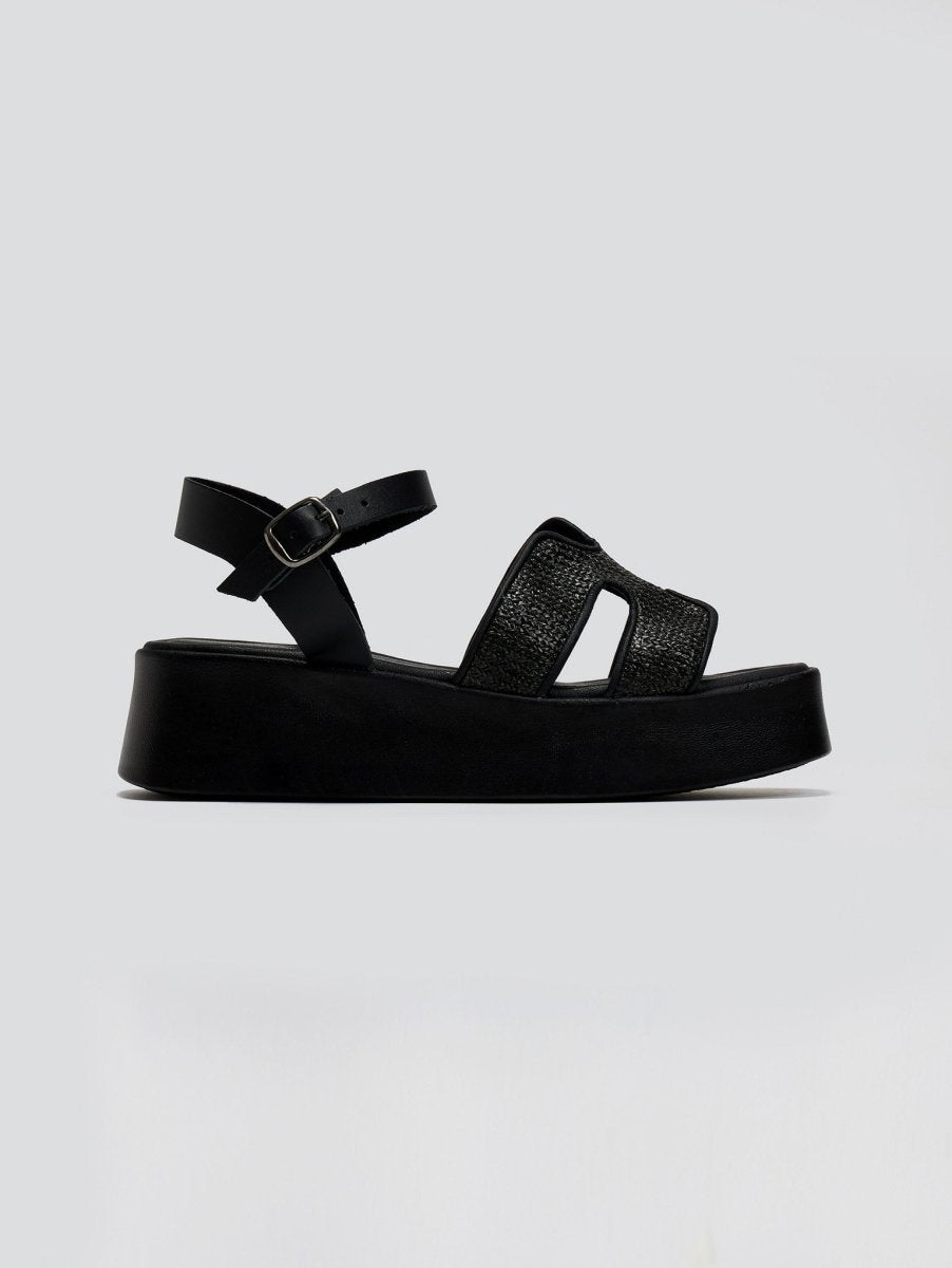 Flatforms σανδάλια δερμάτινα με ψάθα Estil - Μαύρο