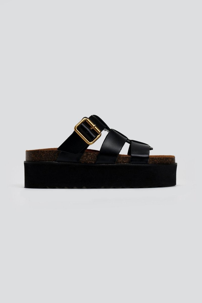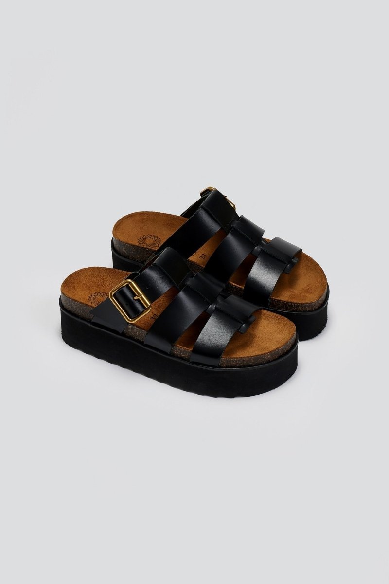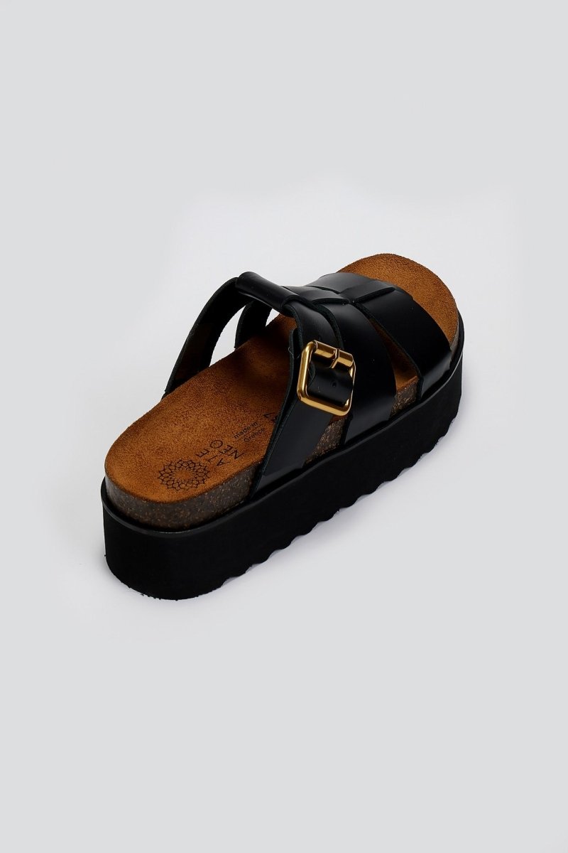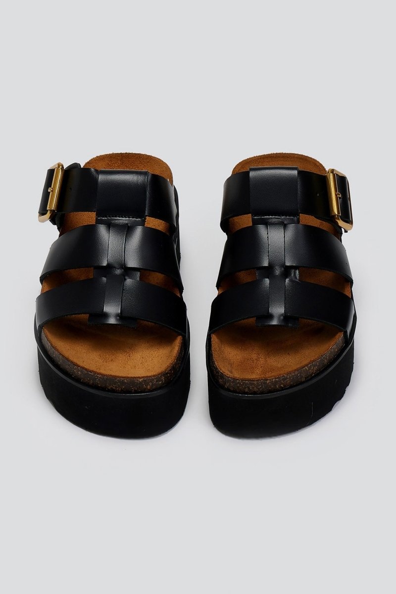 Flatforms σανδάλια δερμάτινα ATENEO - Μαύρο