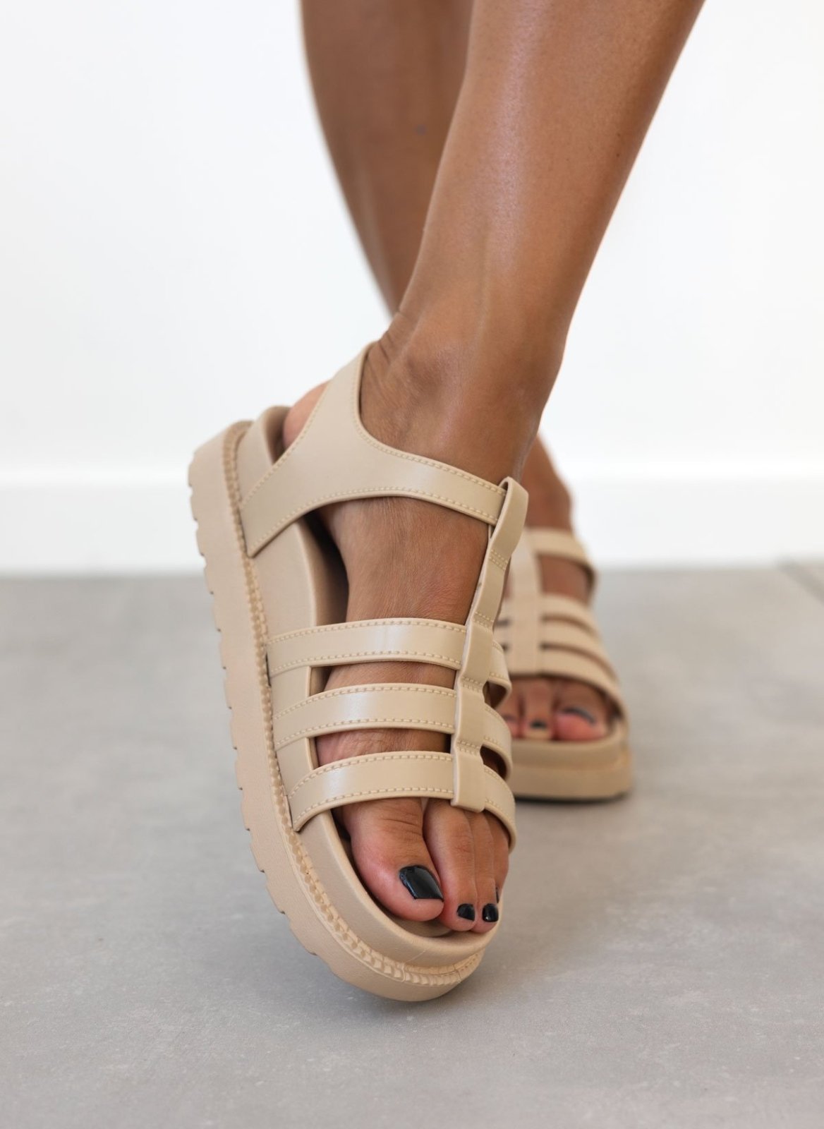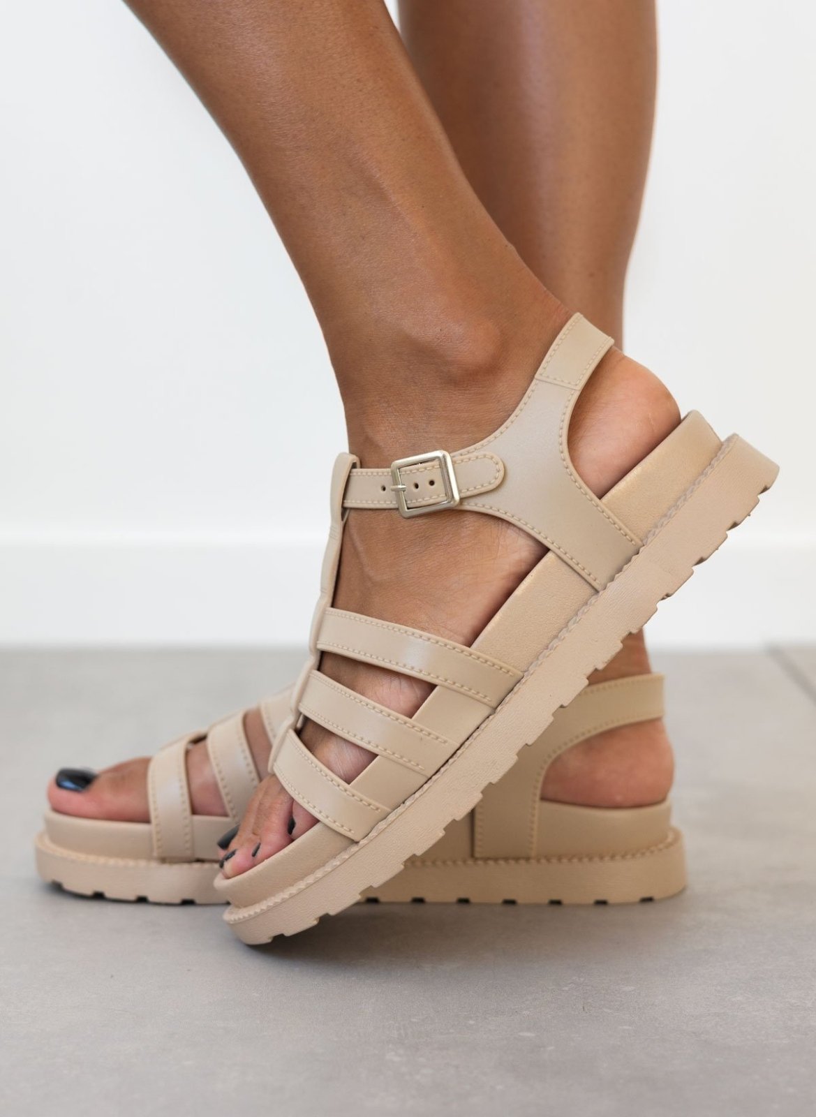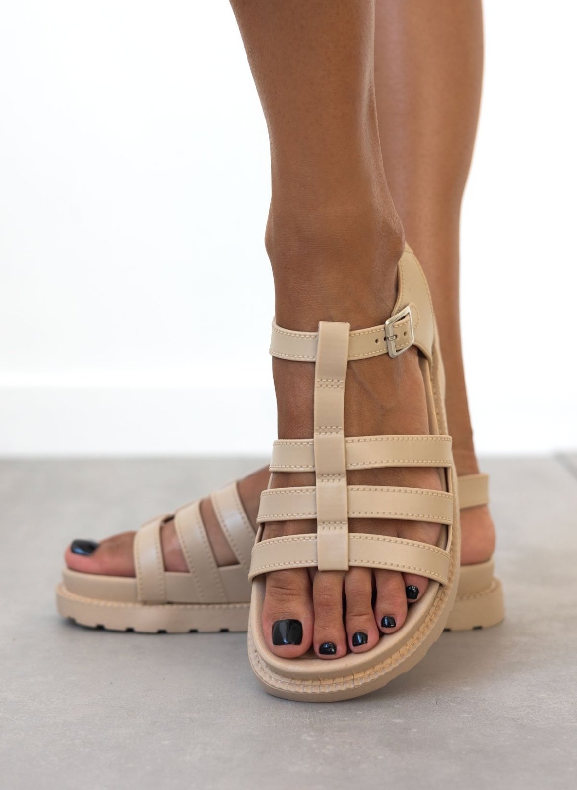 Flatforms σανδάλια gladiator. Ανατομικό σχήμα στον πάτο. Δένουν με λουράκι στο πλάι.