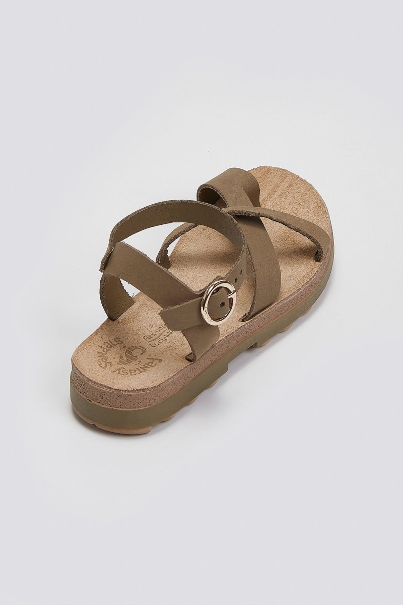 Σανδάλια flatforms από nubuck δέρμα RIVER FANTASY SANTALS. Σχέδιο με crossover λουράκια και δάκτυλο. Δένουν με μπαρέτα στο ύψος του αστραγάλου. Καστόρινος πάτος. Flexible μαλακή σόλα. Ελληνικής κατασκευής.