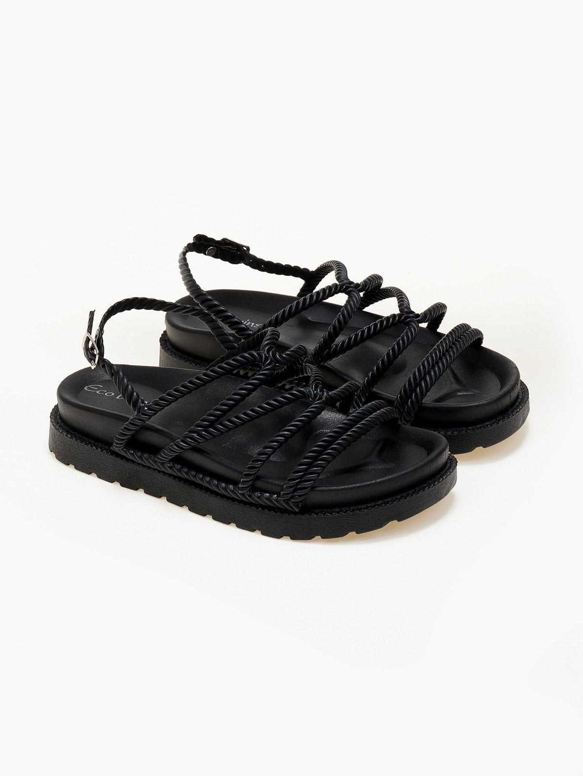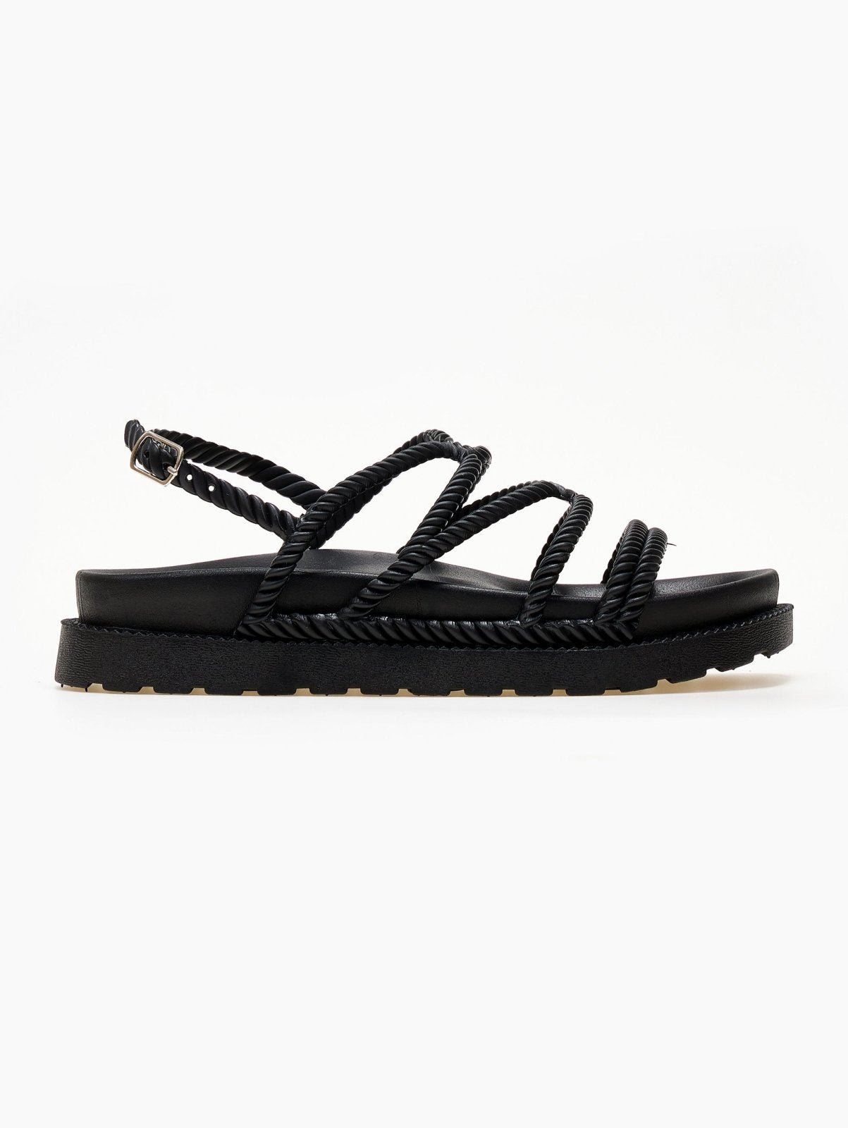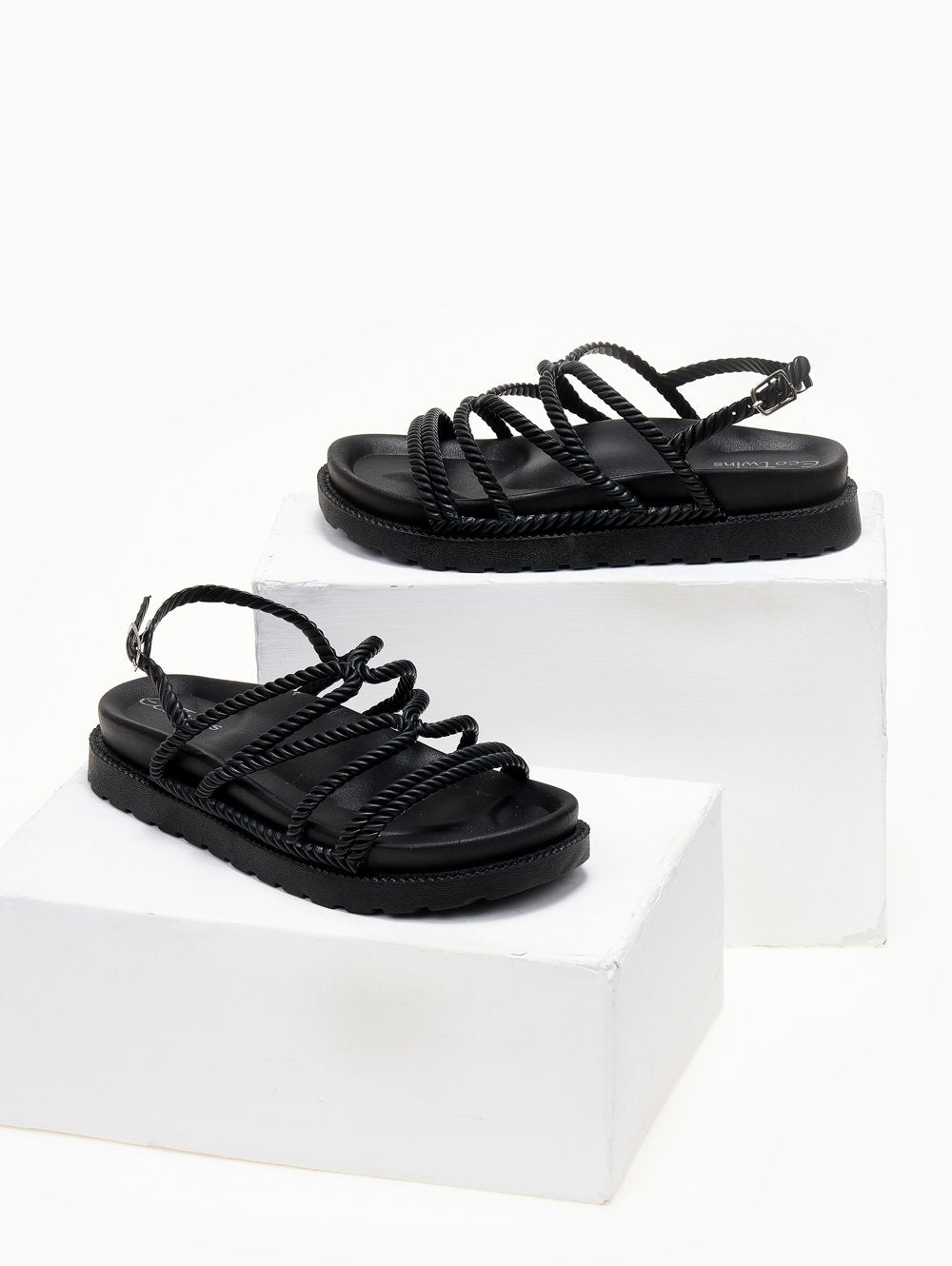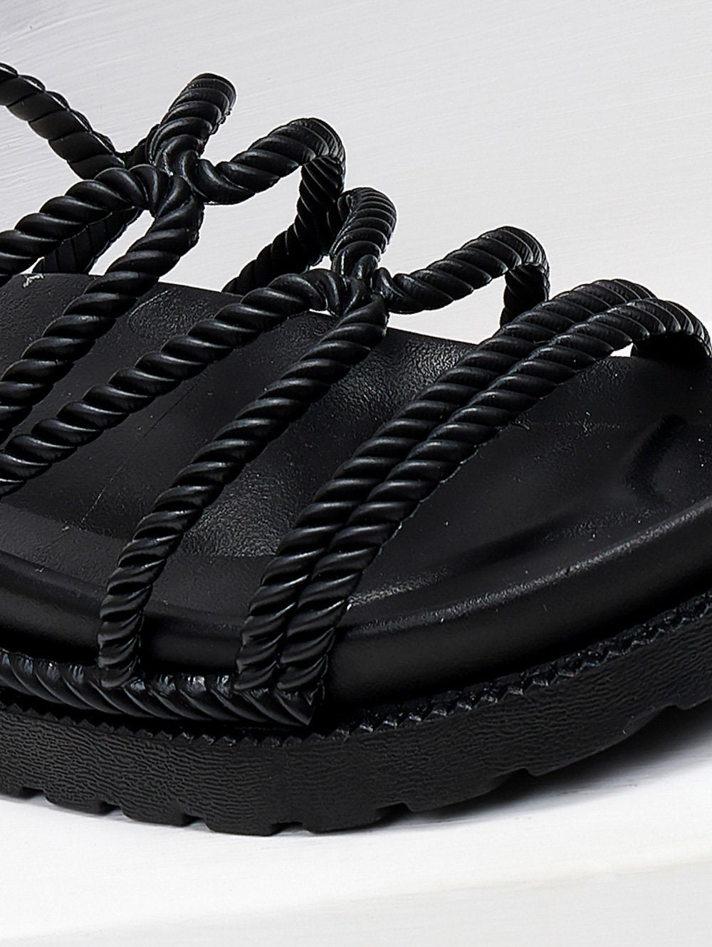 Flatforms σανδάλια με σχέδιο σχοινί στα λουράκια - Μαύρο