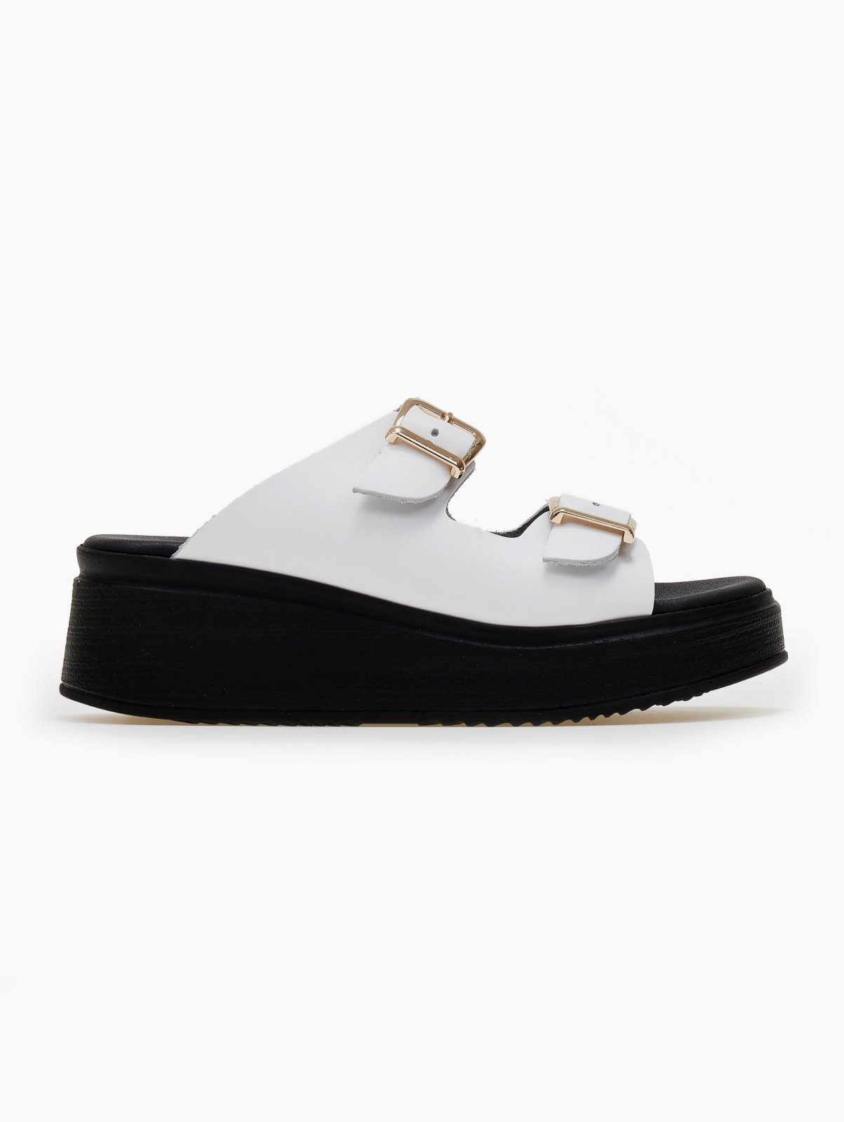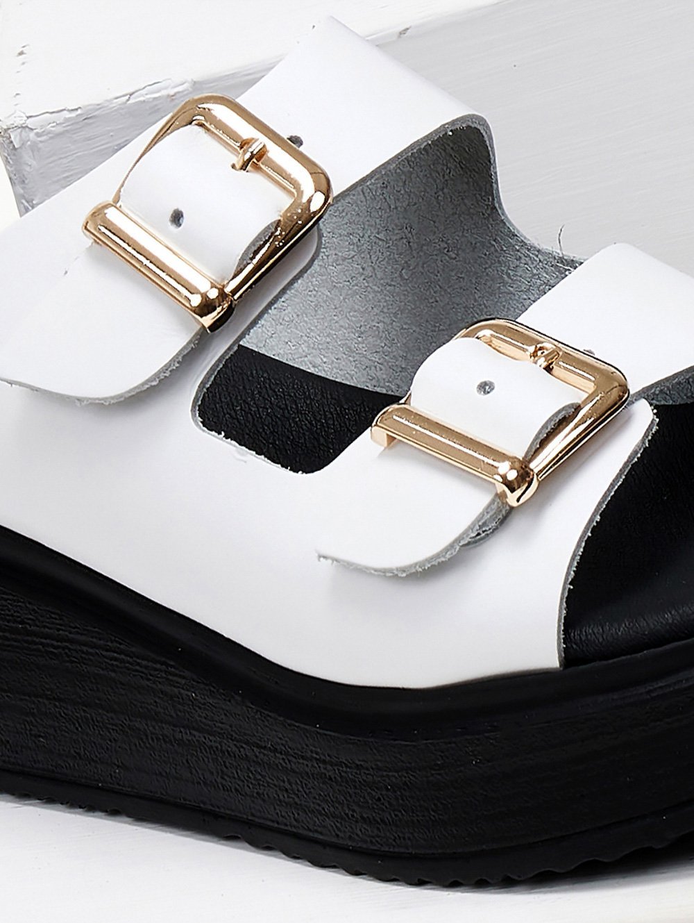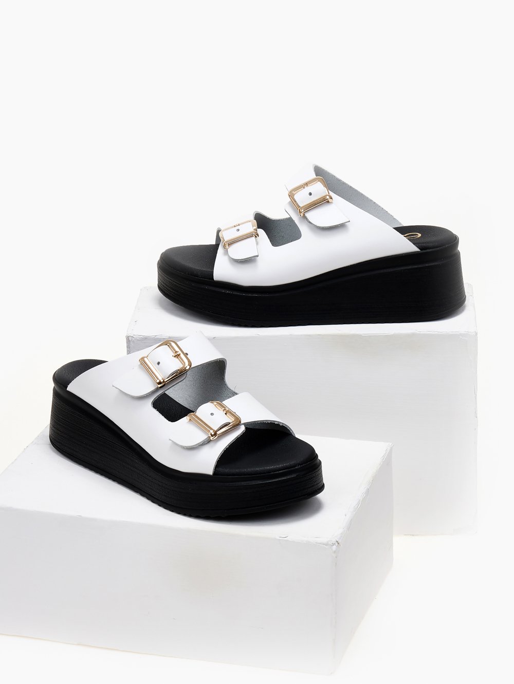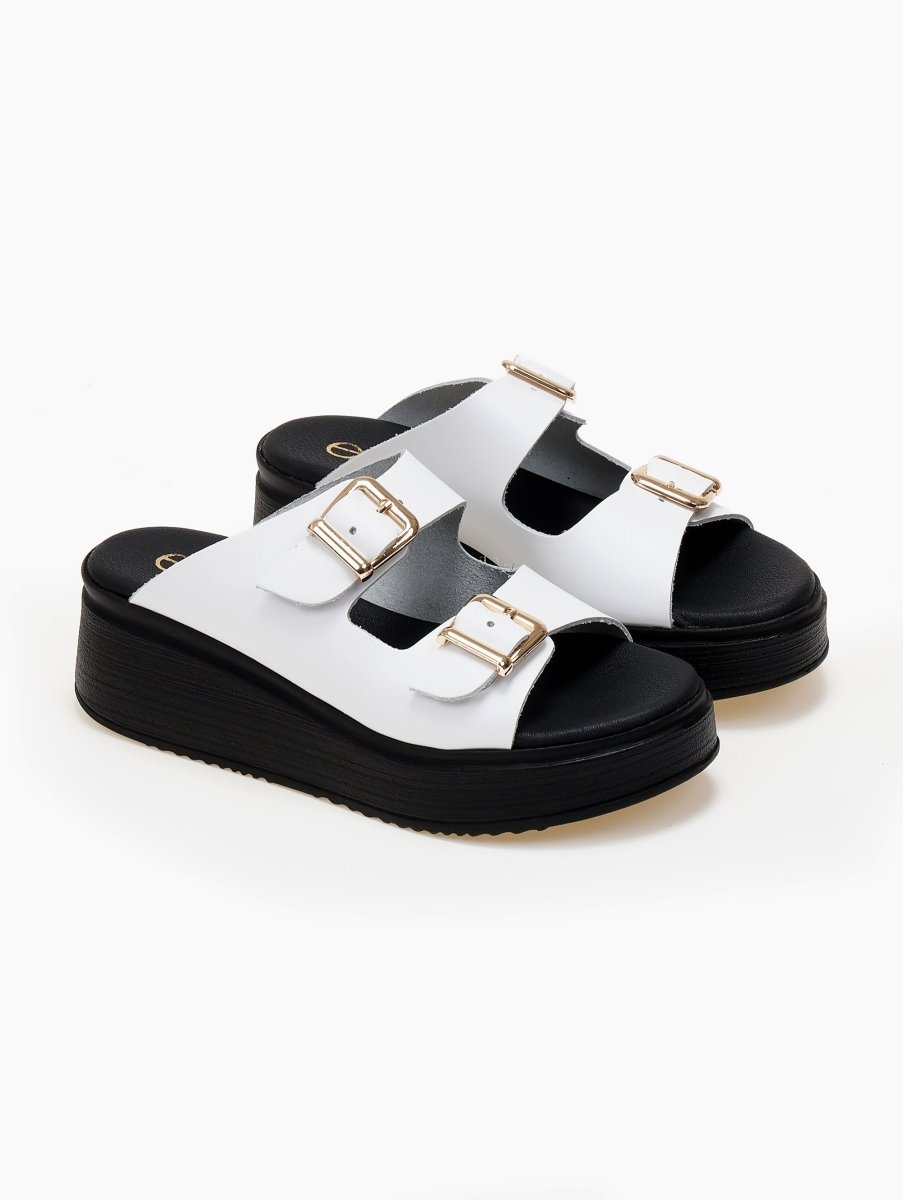 Flatforms σανδάλια με δερμάτινες φάσες Estil. Έχουν oversized τοκάδες στο πλάι. Μαλακός πάτος με ενίσχυση. Ελληνικής κατασκευής.