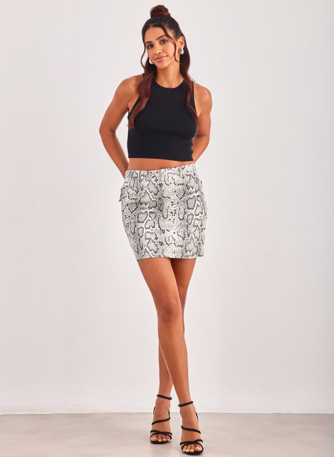 Φούστα μίνι με εκτύπωση ΤΕΜΑΧΙΑ 17154598 - Λευκό/Μαύρο