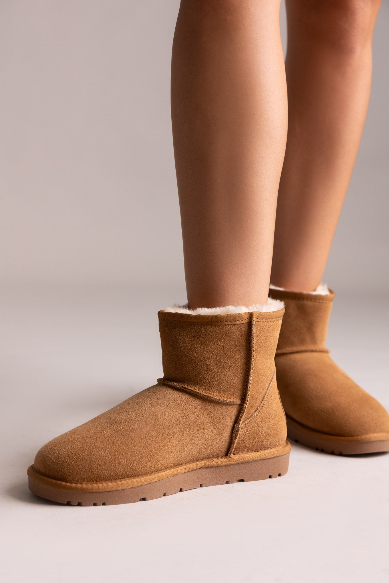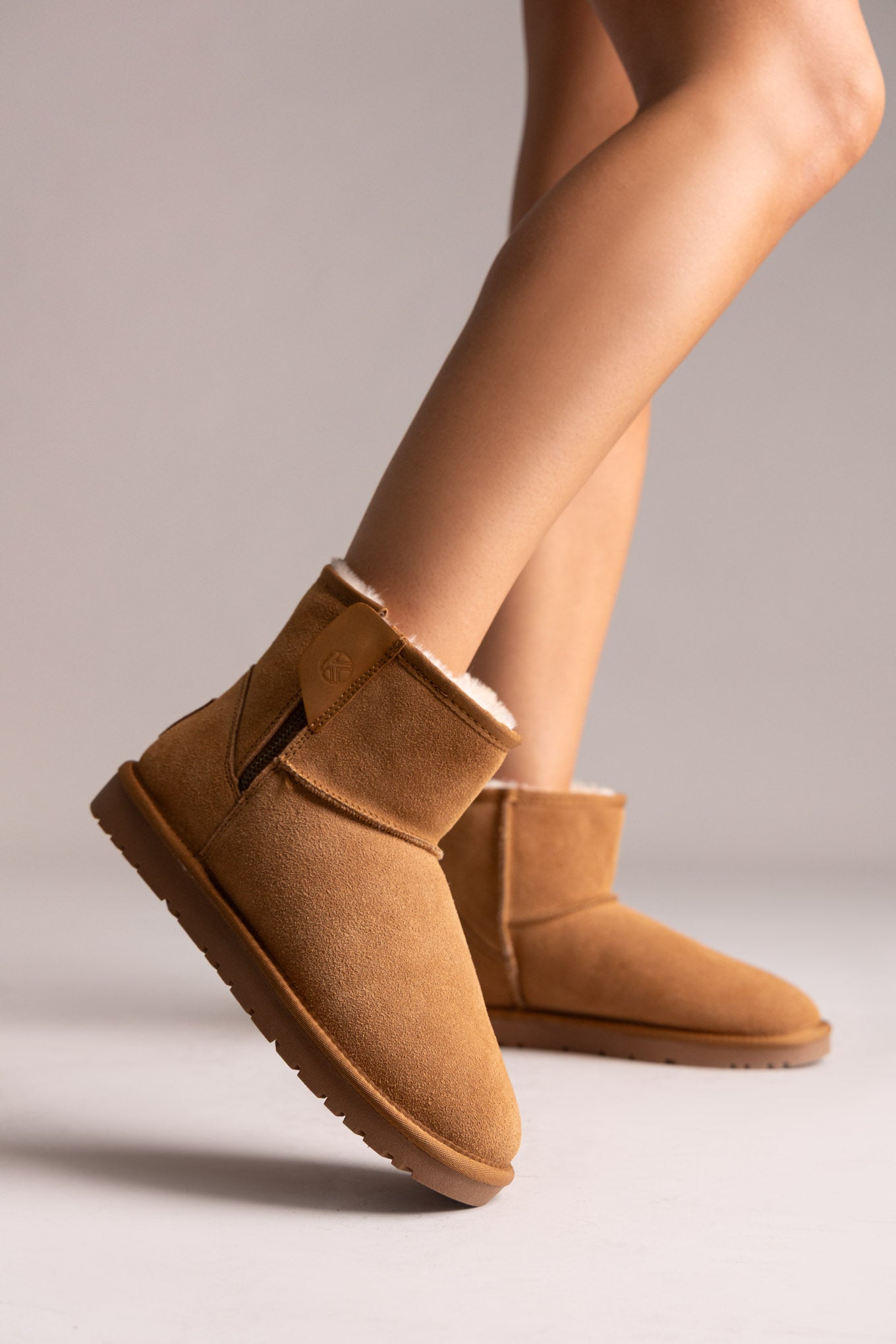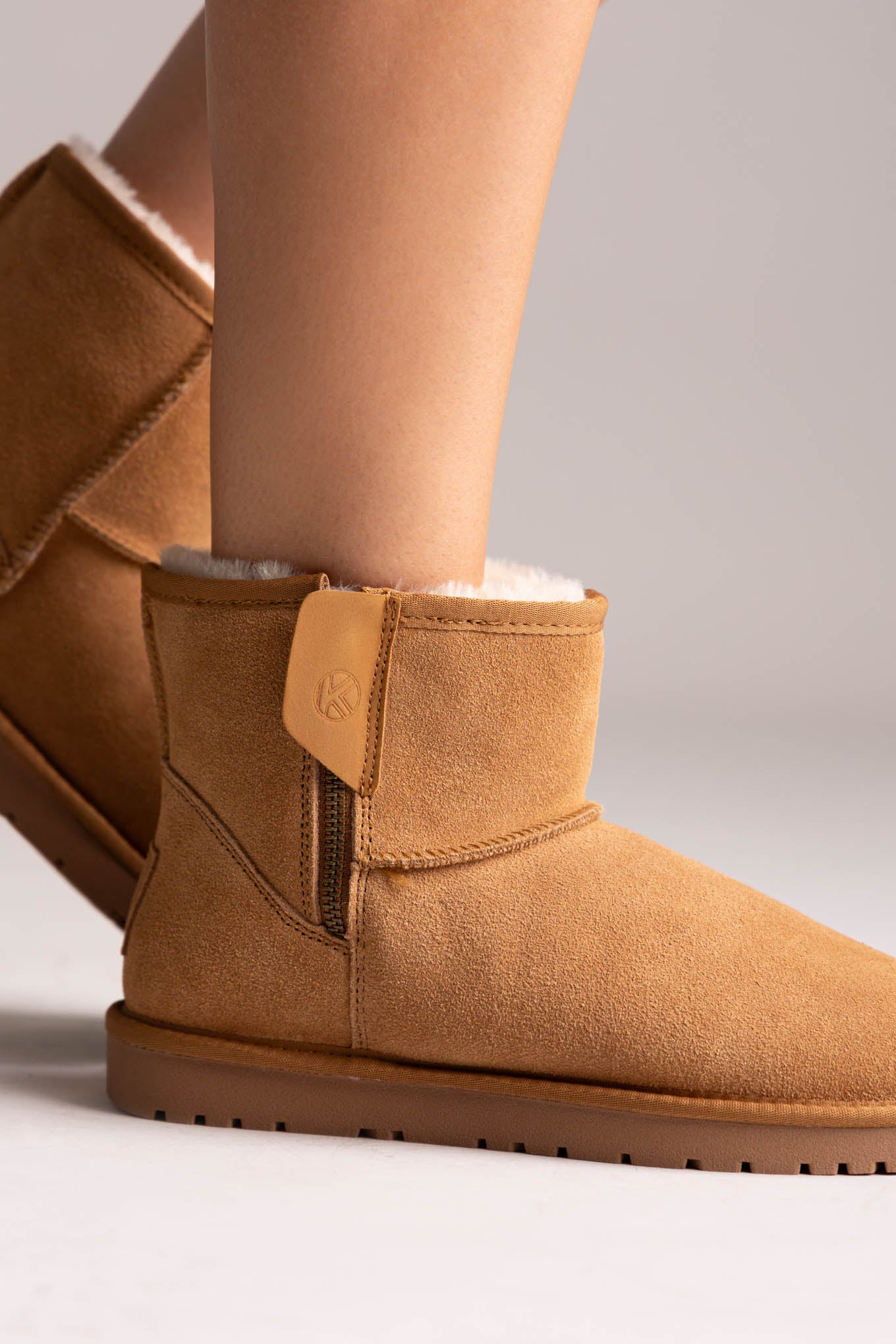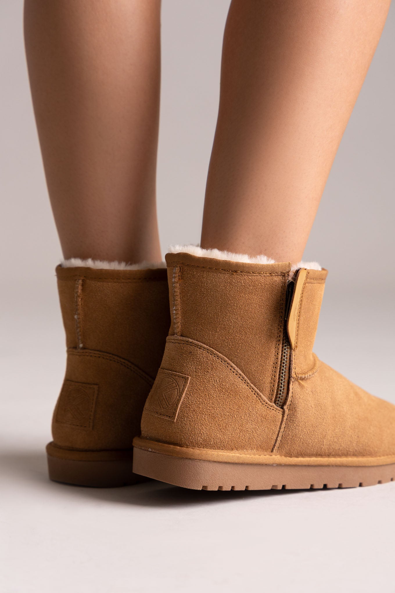 Μποτάκια αστραγάλου με γούνα και φερμουάρ στο πλάι Kelara - Καμηλό Σουέτ